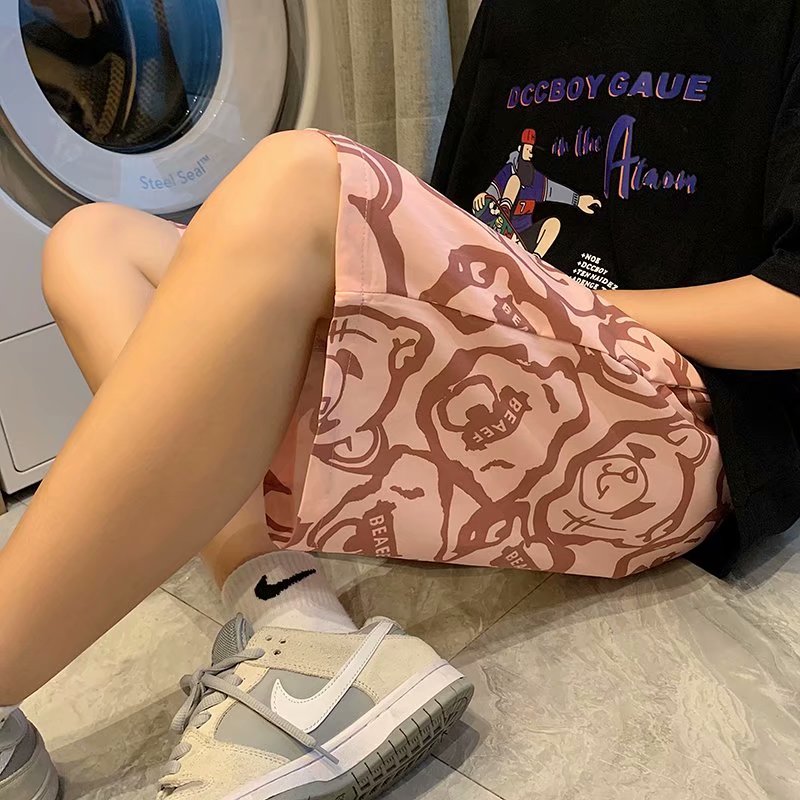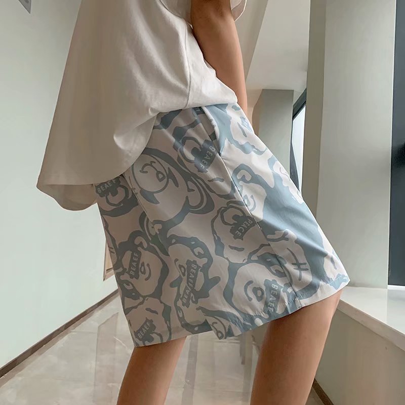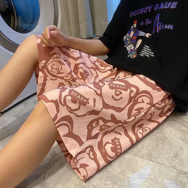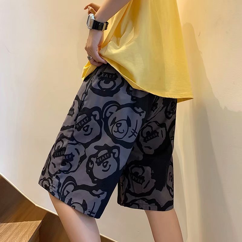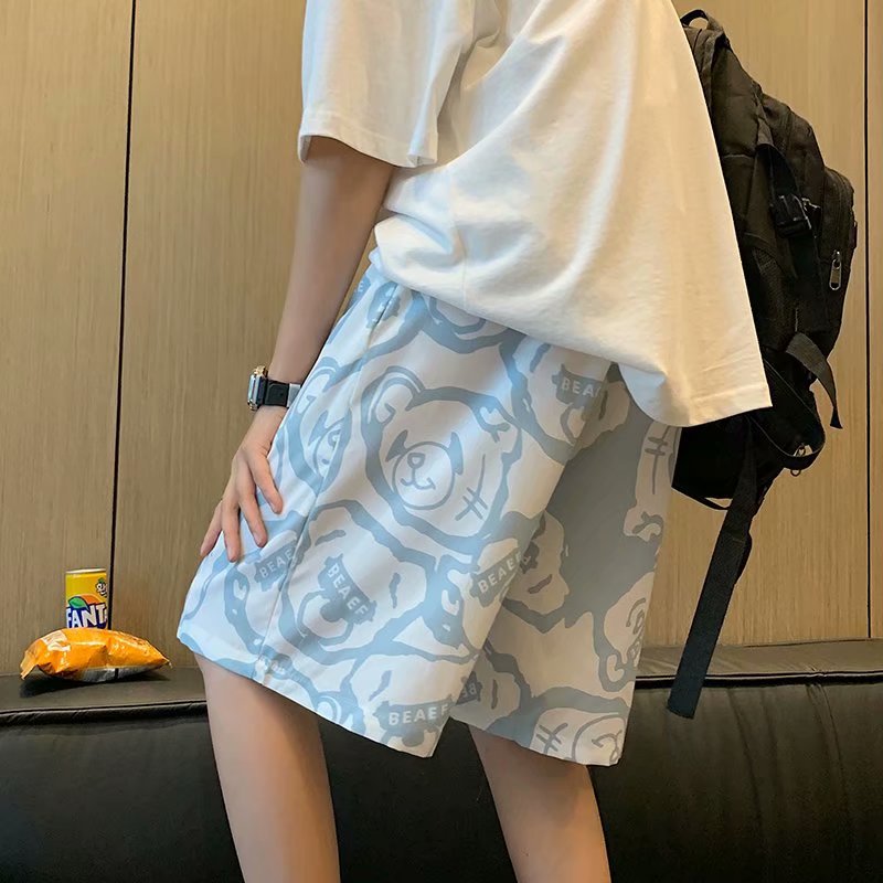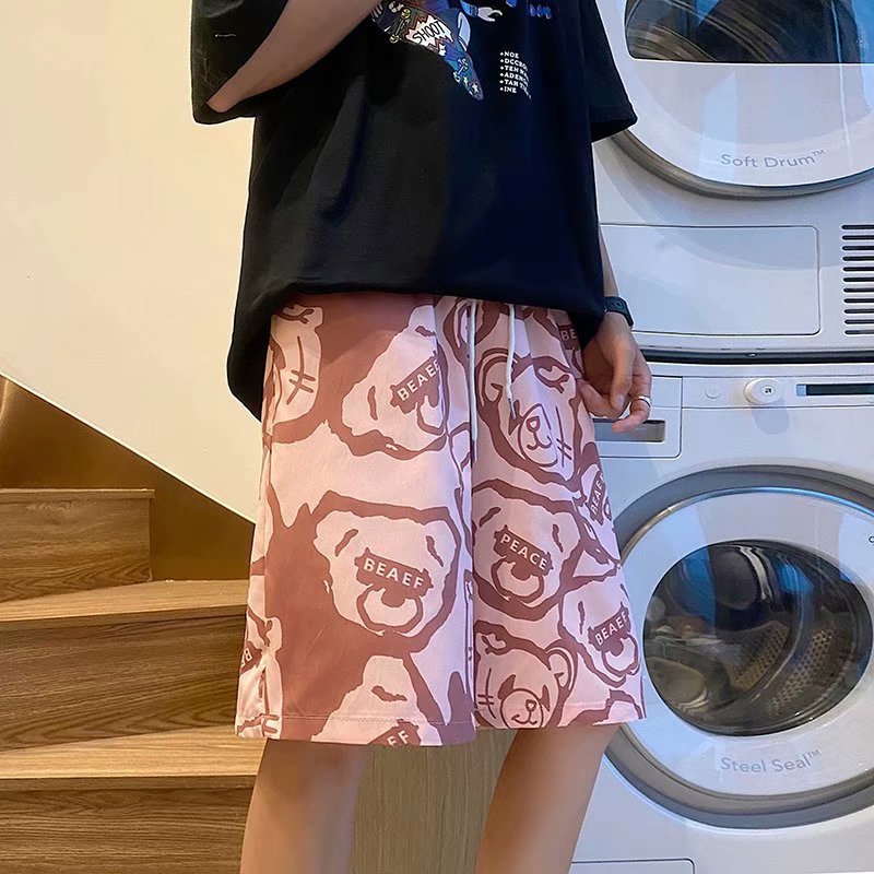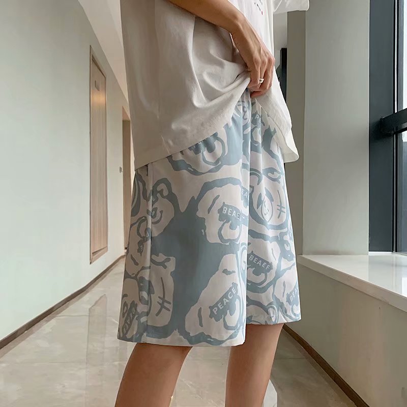 短裤男夏季潮流宽松休闲直筒运动裤韩版港风扎染迷彩男装五分裤子