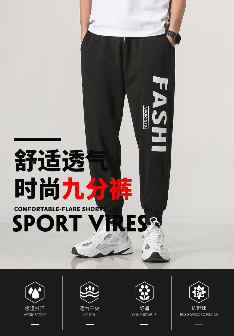 2021男式柔软布料中腰休闲现货青少年黑色字母弹力裤休闲裤五分裤