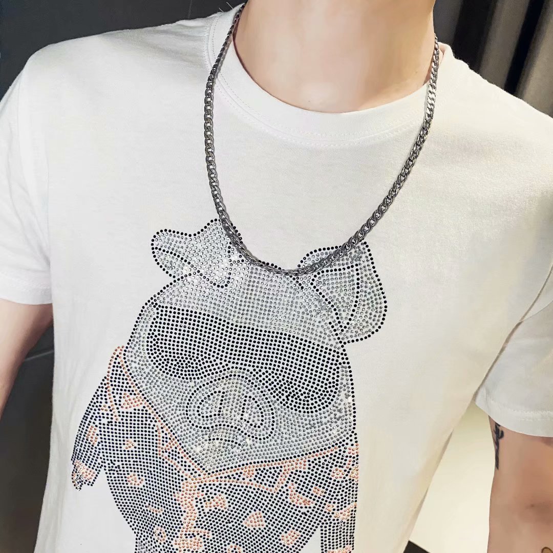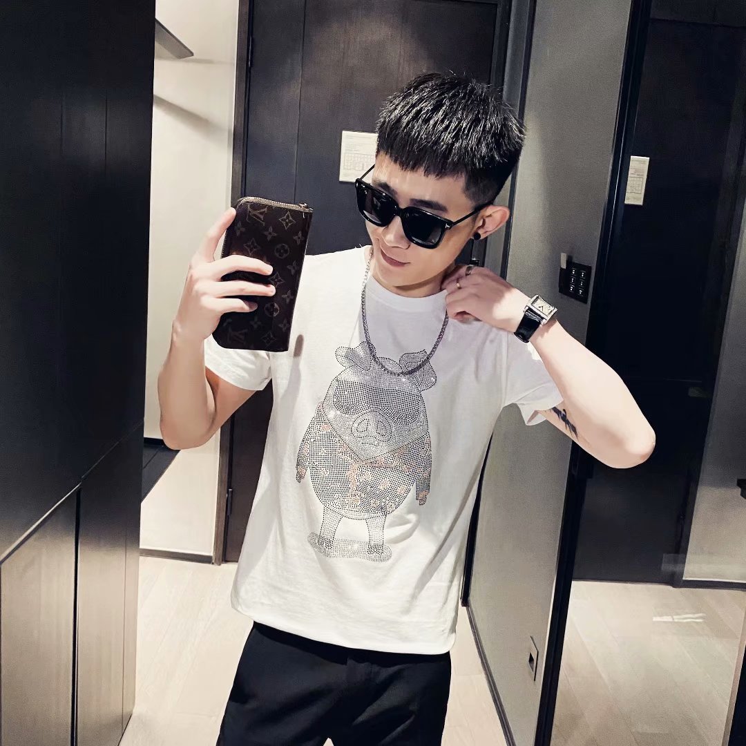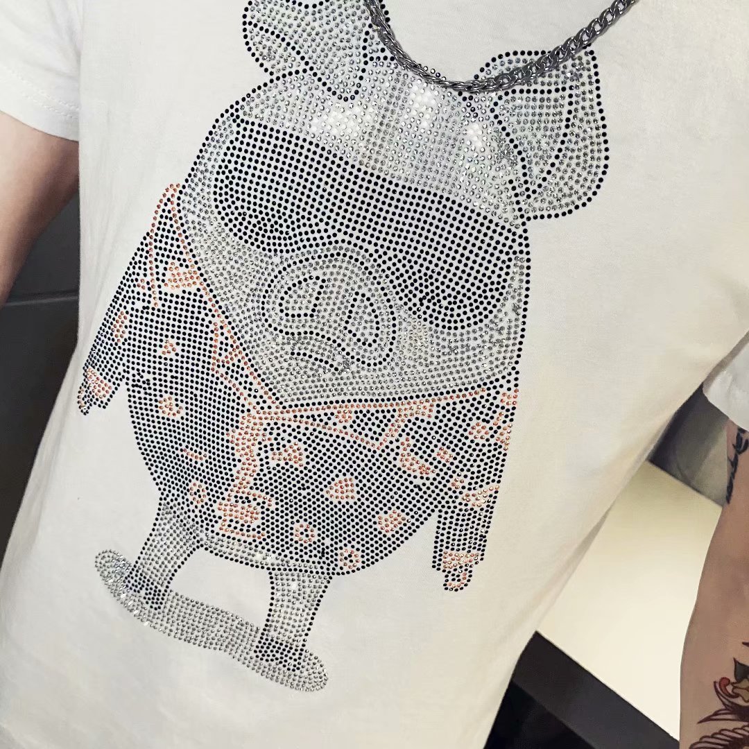 2021早春新款we11done夜光植绒烫画小熊圆领休闲情侣短袖T恤跨境