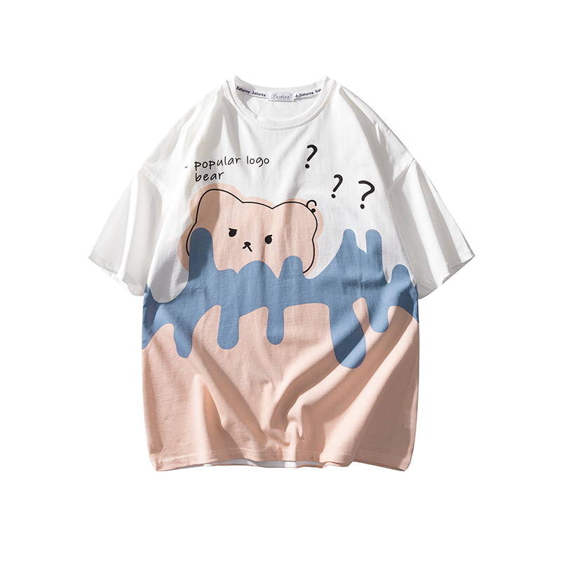 2021早春新款we11done夜光植绒烫画小熊圆领休闲情侣短袖T恤跨境