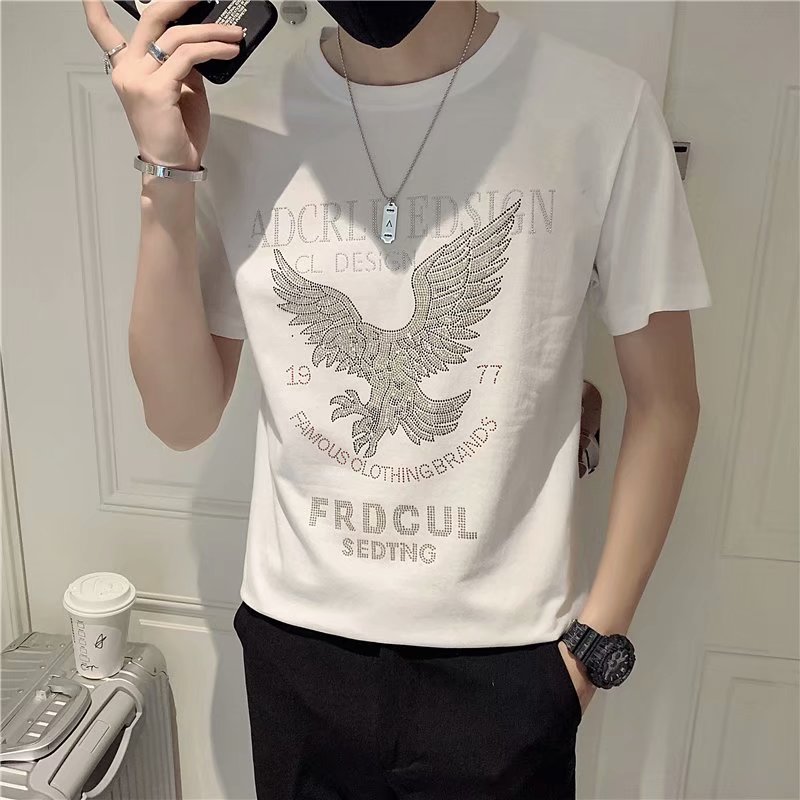 夏季2021新款短袖t恤男士潮牌韩版潮流宽松圆领棉布料好搭衣服