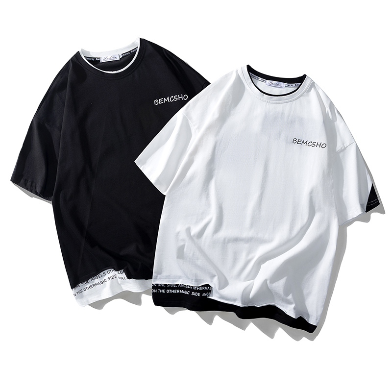 夏季2021新款短袖t恤男士潮牌韩版潮流宽松圆领棉布料好搭衣服