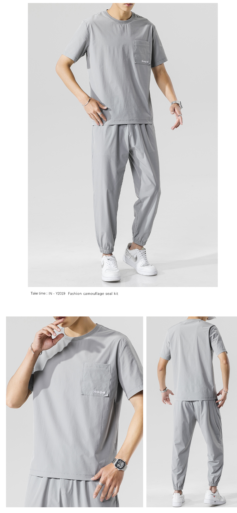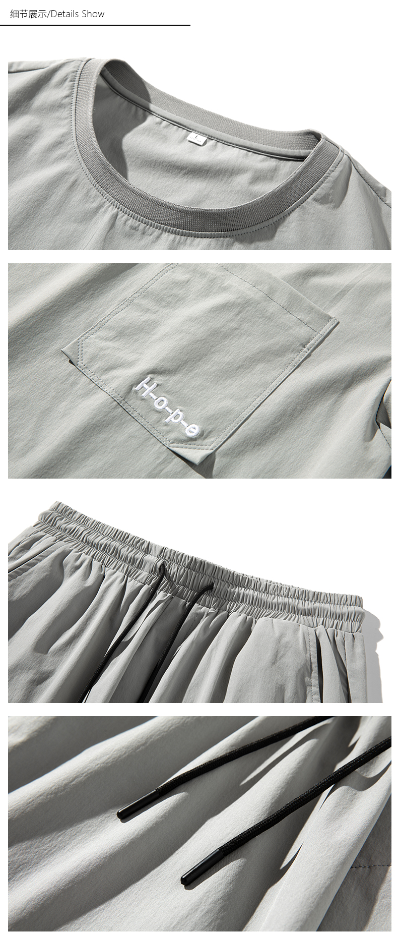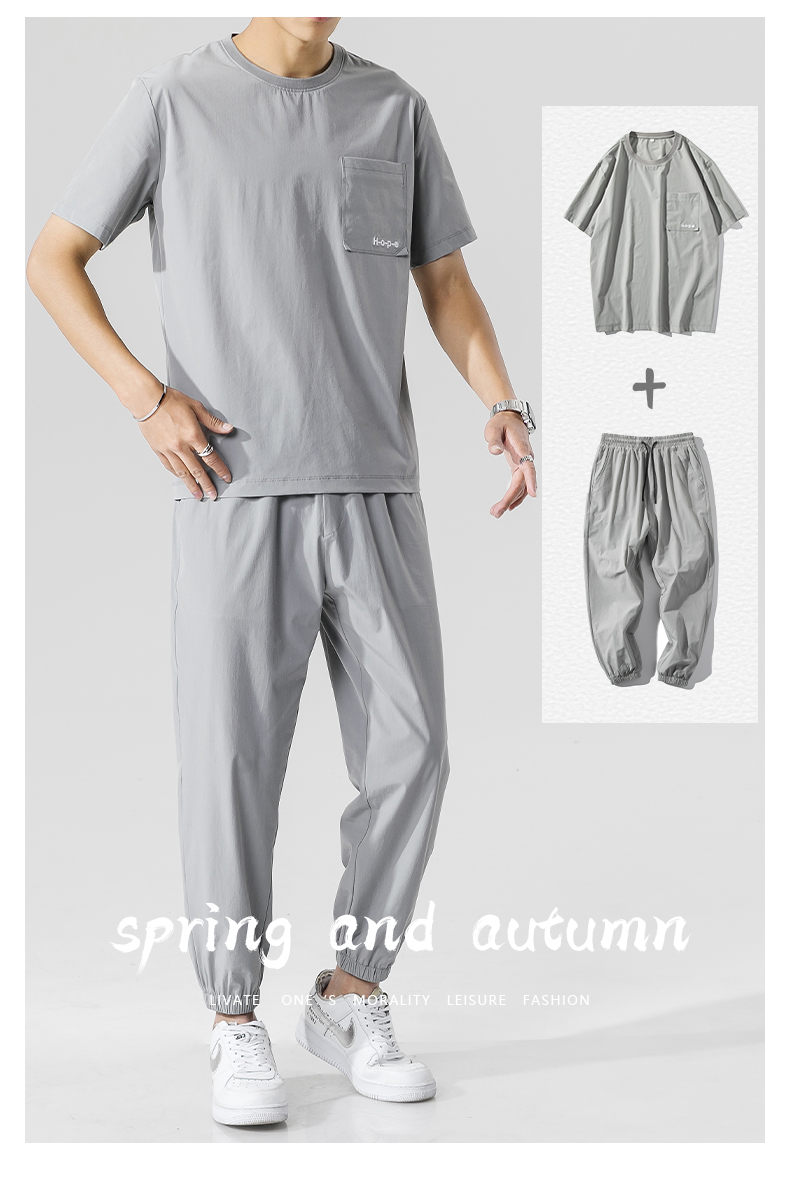2021夏季新款新型蚂蚁皱布料短袖短裤潮流印花运动时尚休闲套装男
