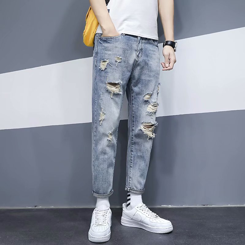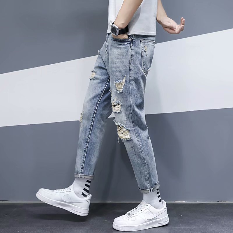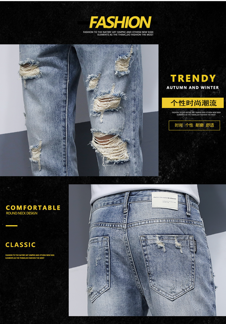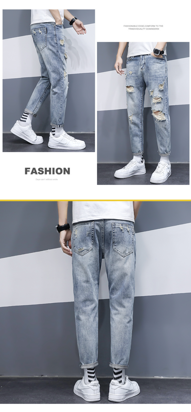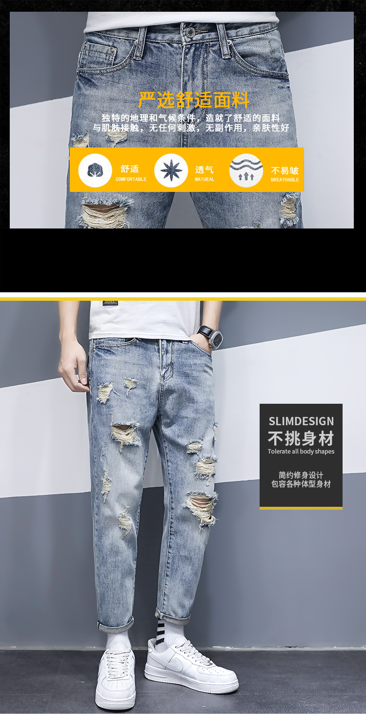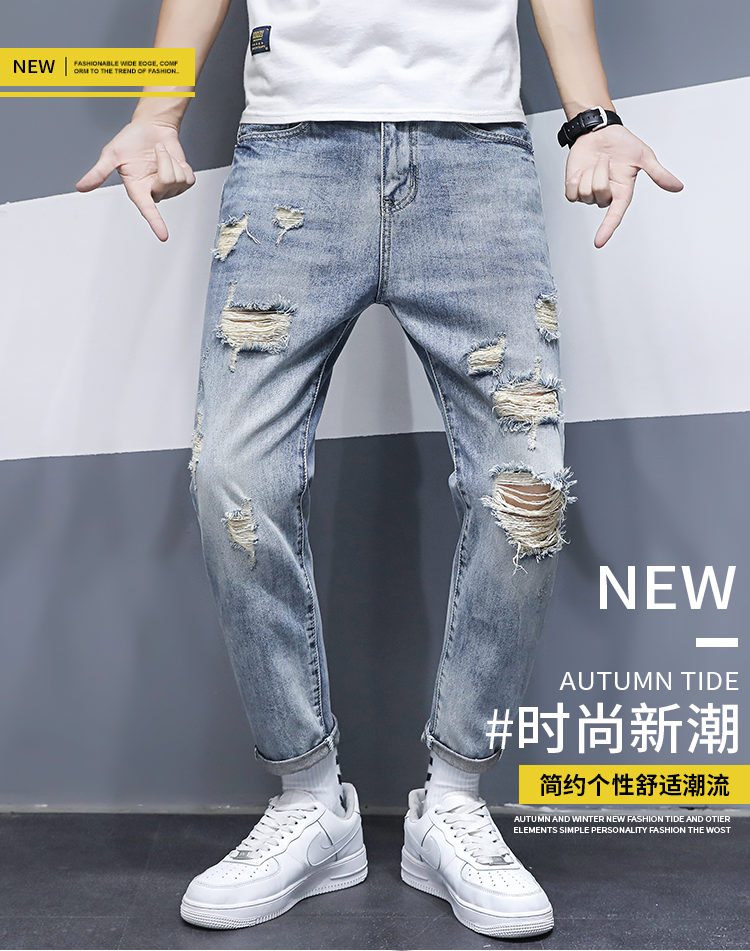 四季新款潮牌男士牛仔裤舒适布料2021新款小直筒男士韩版潮牛仔裤