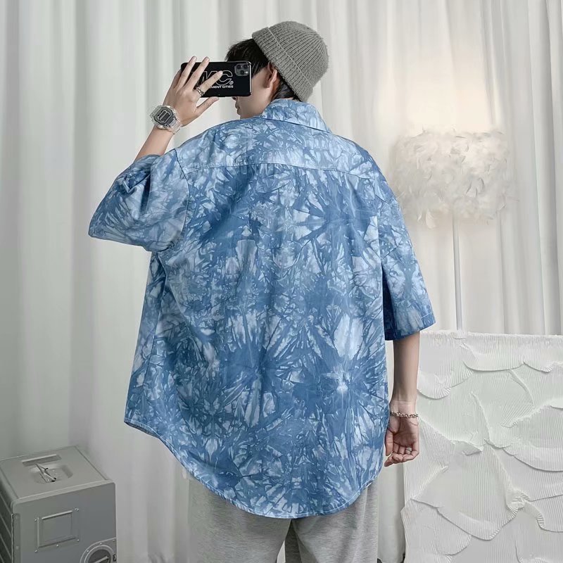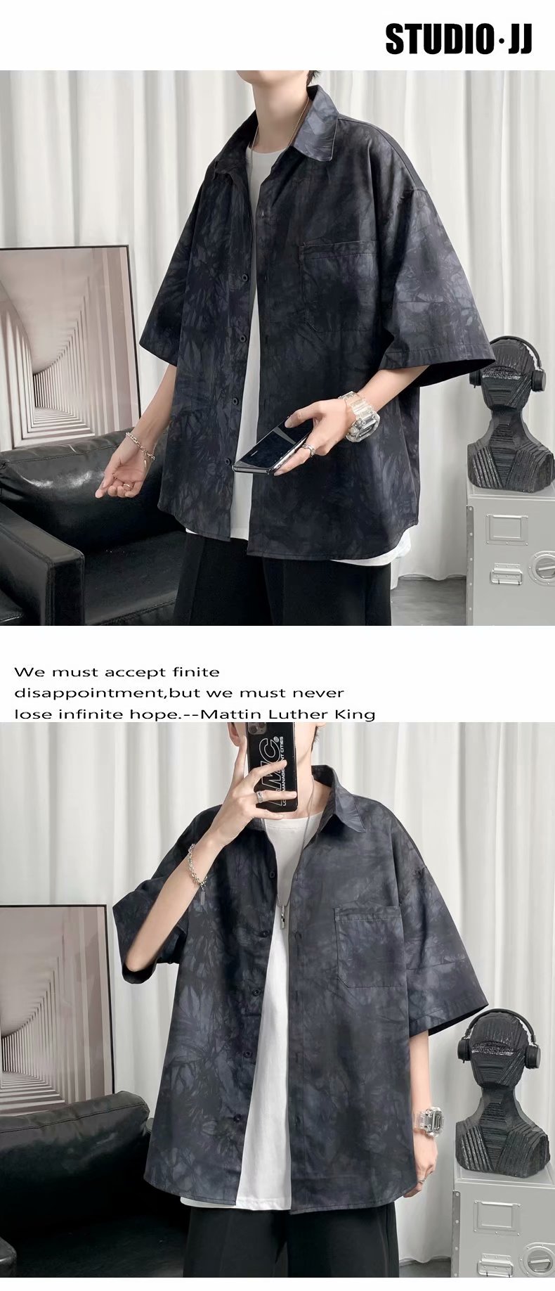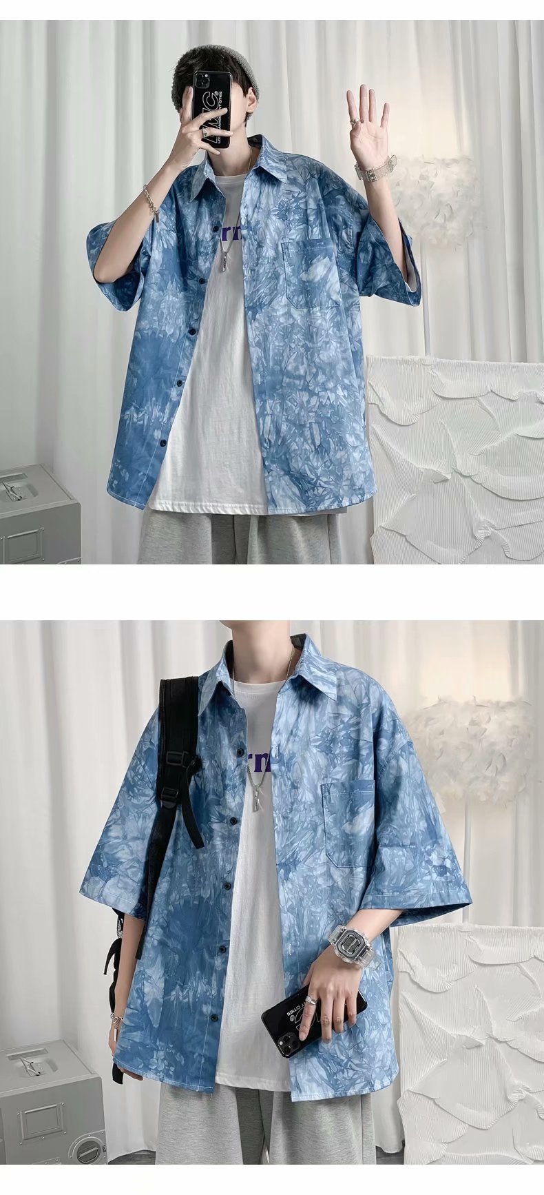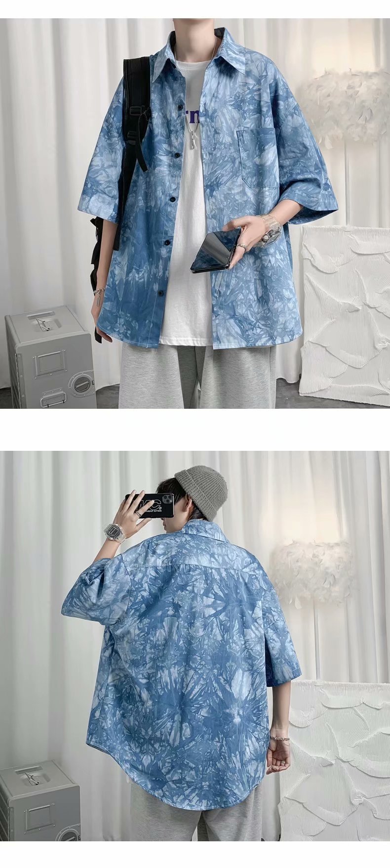短裤男夏季潮流宽松休闲直筒运动裤韩版港风扎染迷彩男装五分裤子