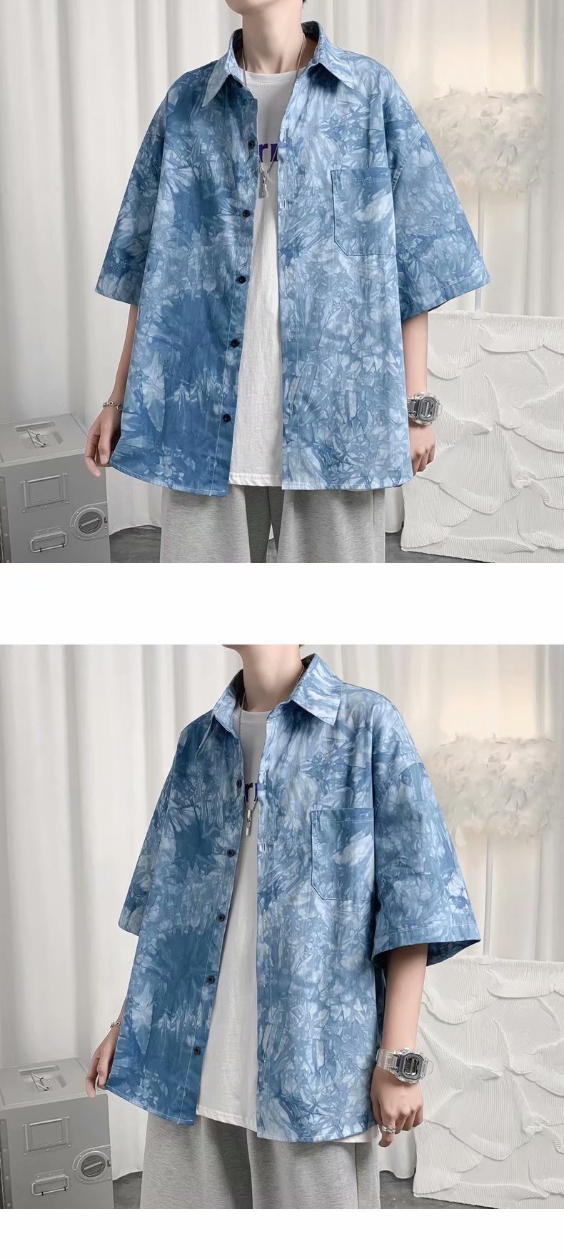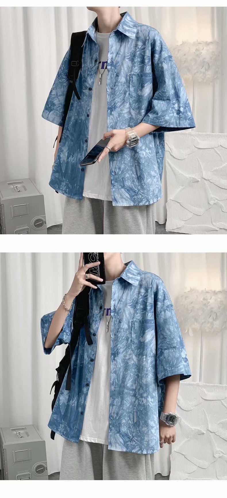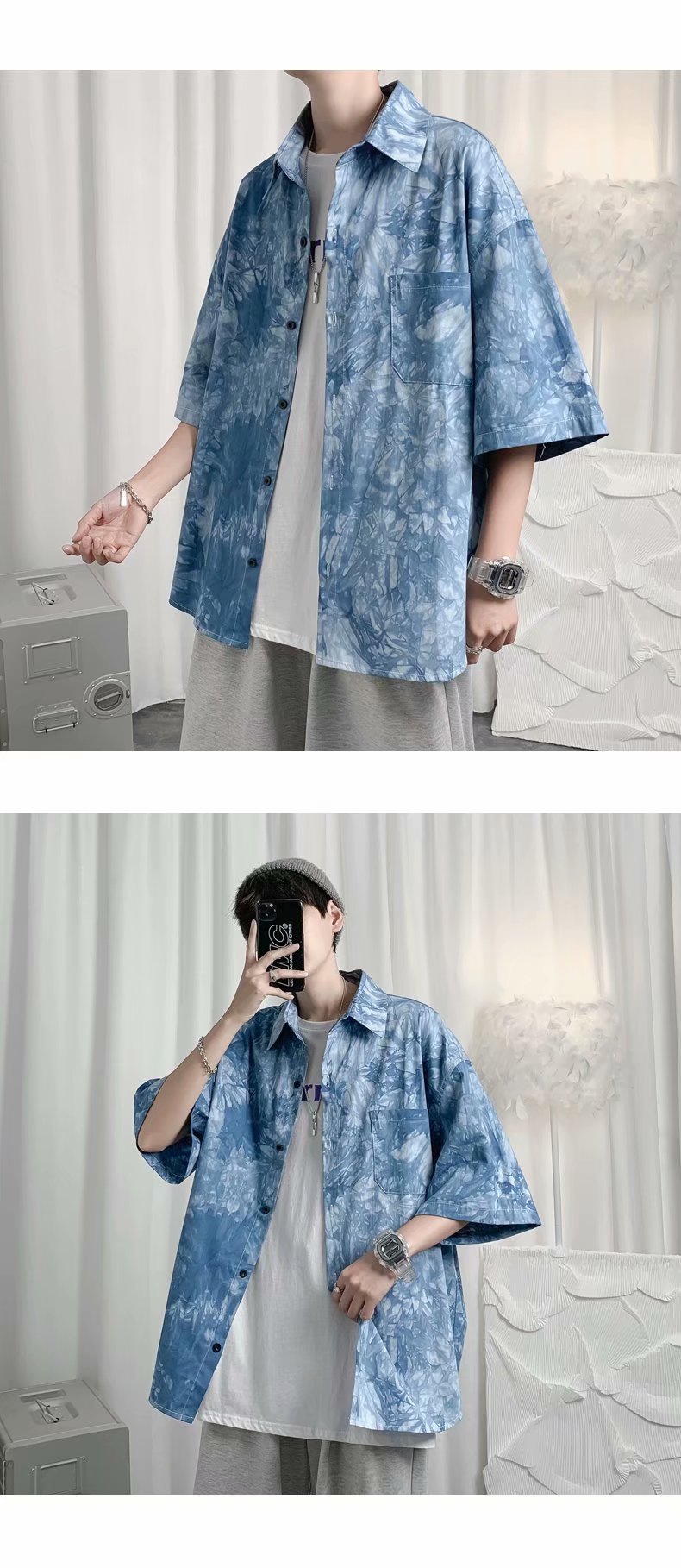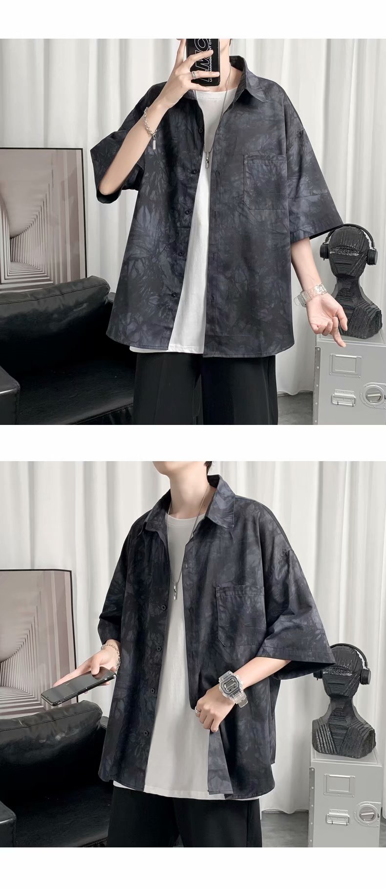 短裤男夏季潮流宽松休闲直筒运动裤韩版港风扎染迷彩男装五分裤子