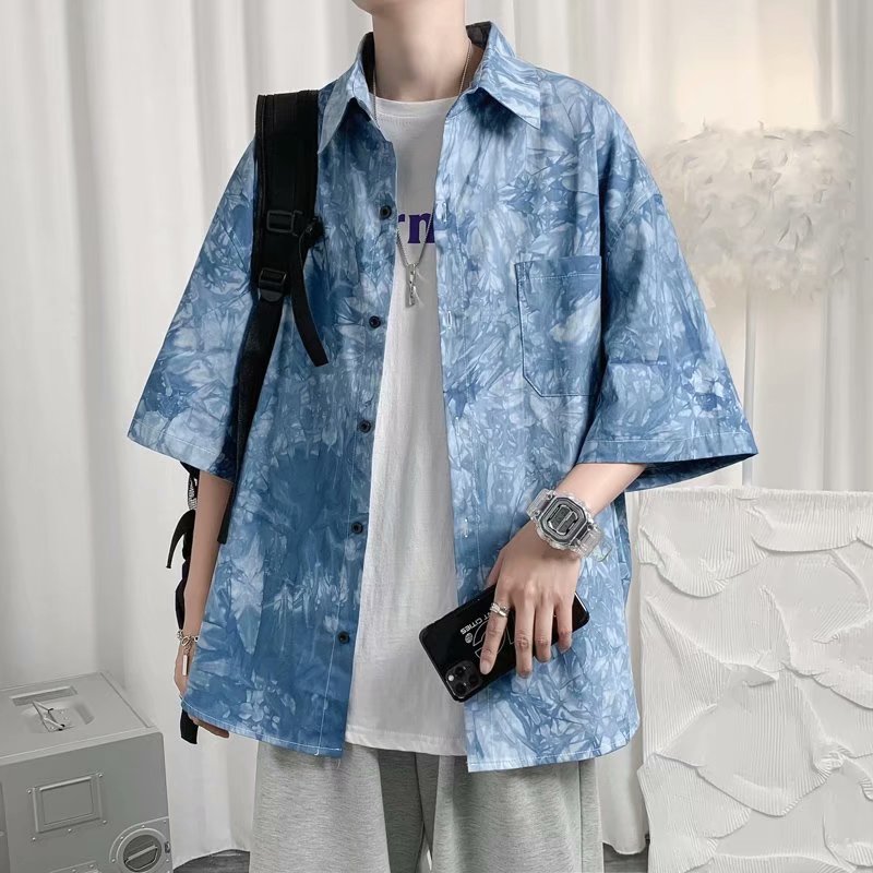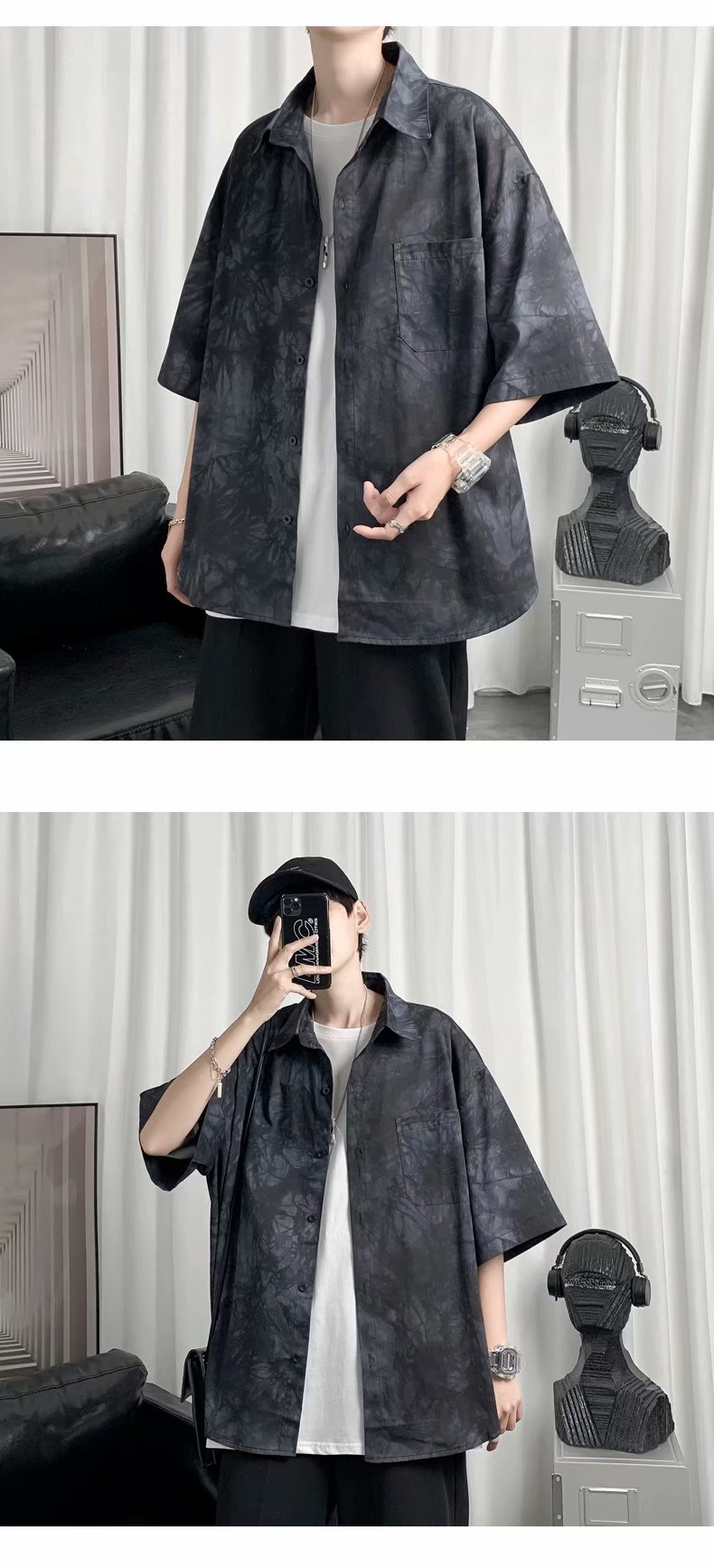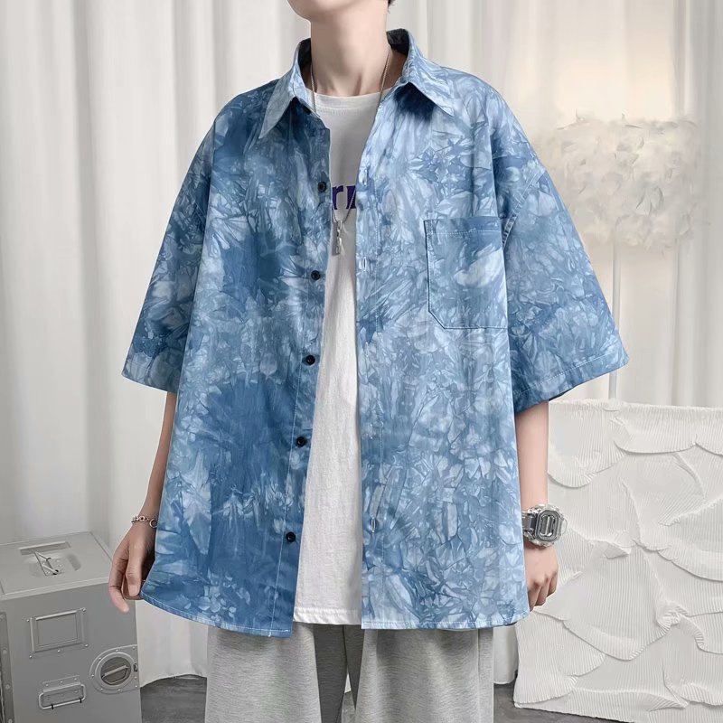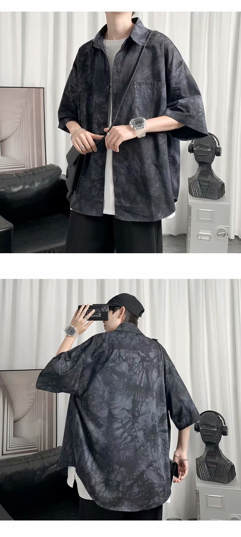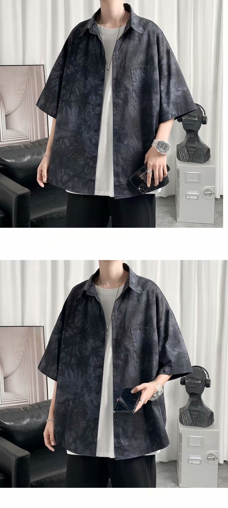 短裤男夏季潮流宽松休闲直筒运动裤韩版港风扎染迷彩男装五分裤子