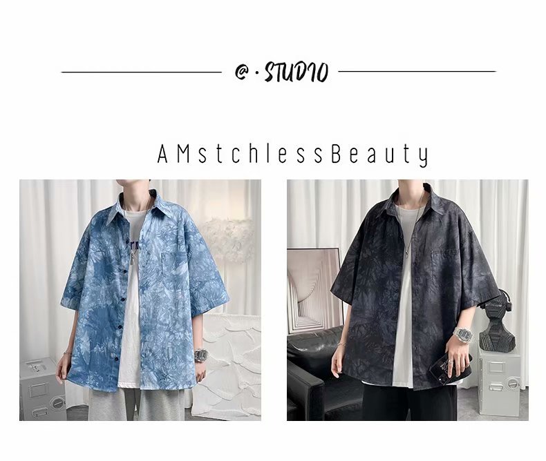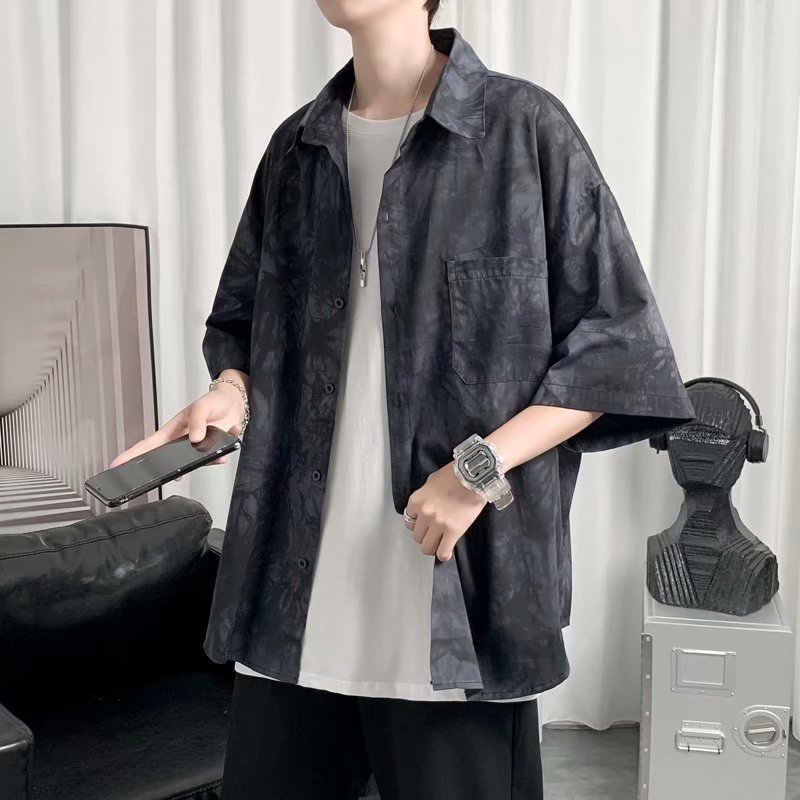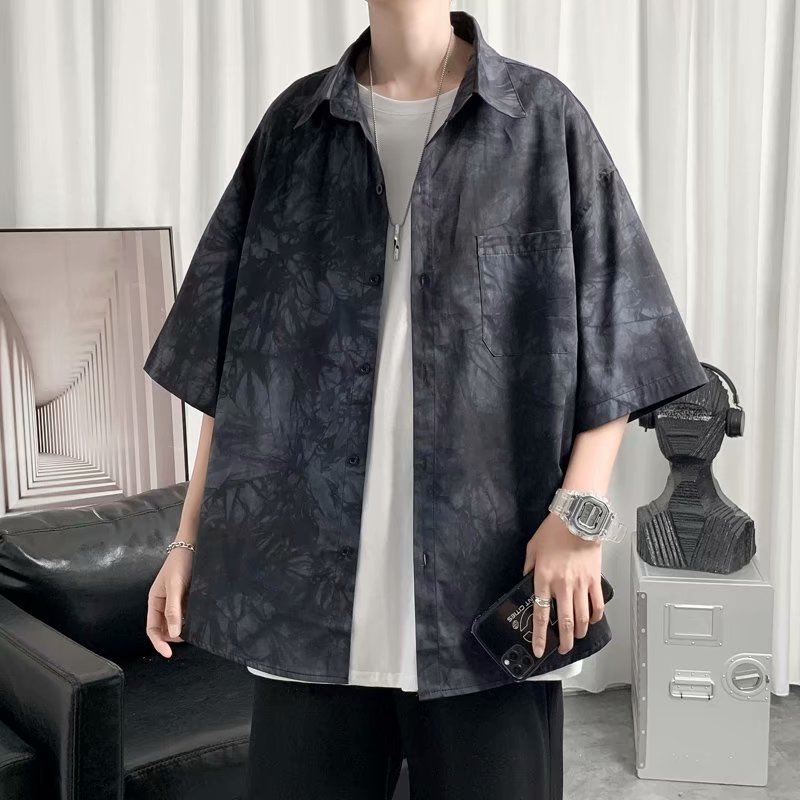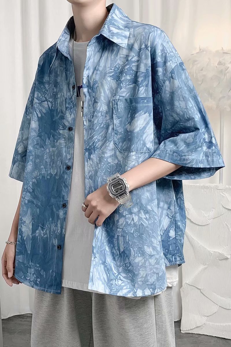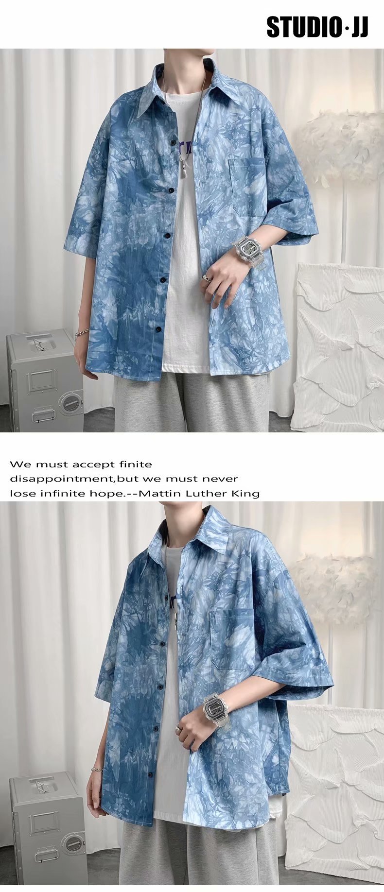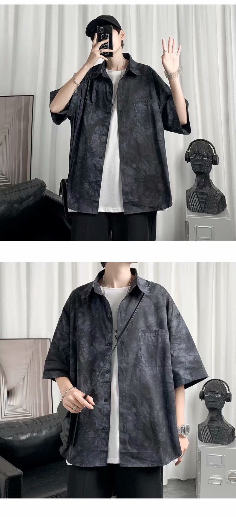 短裤男夏季潮流宽松休闲直筒运动裤韩版港风扎染迷彩男装五分裤子