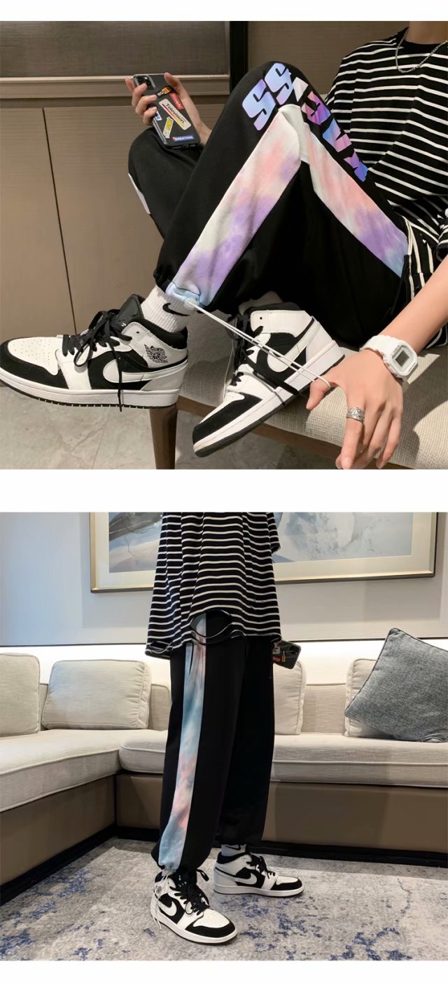短裤男夏季潮流宽松休闲直筒运动裤韩版港风扎染迷彩男装五分裤子