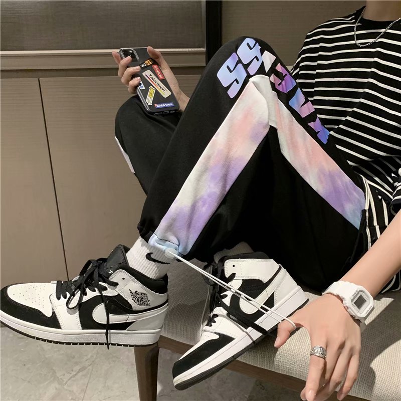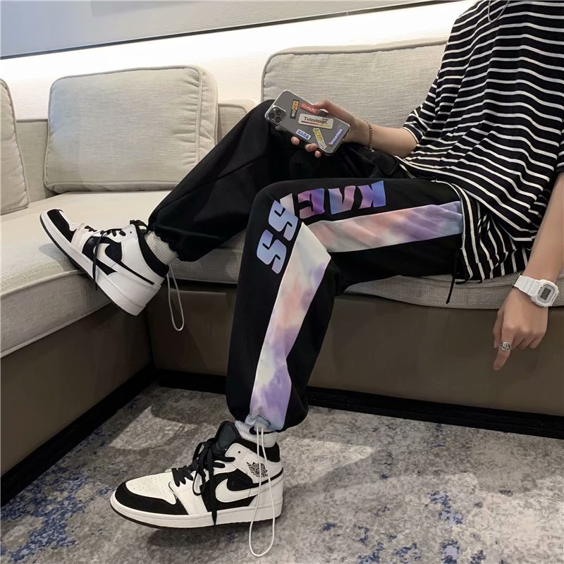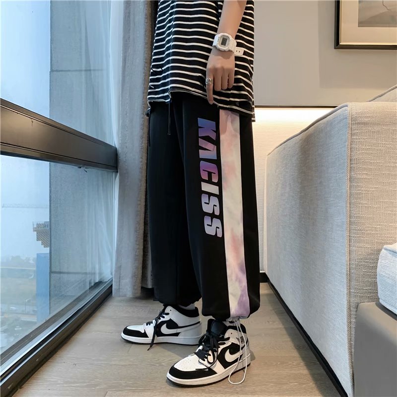 2021男式柔软布料中腰休闲现货青少年黑色字母弹力裤休闲裤五分裤