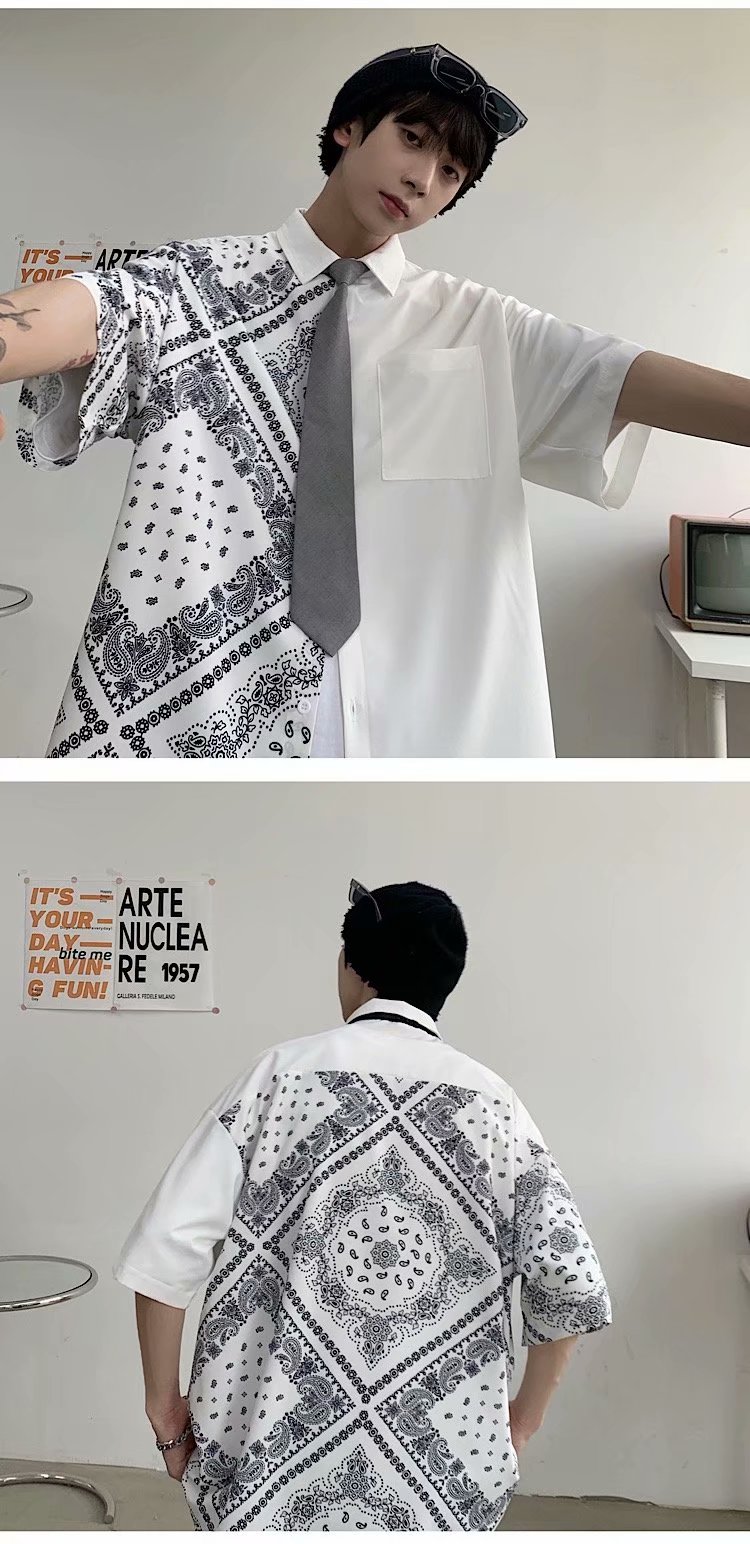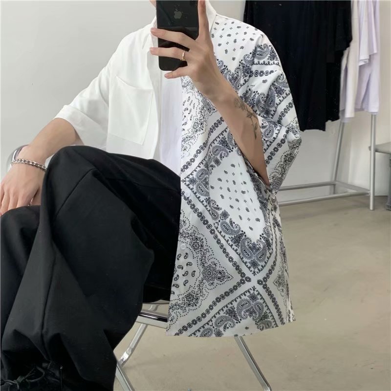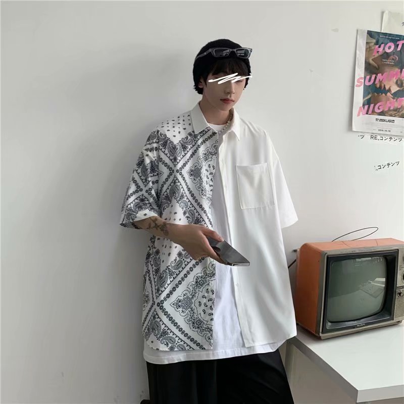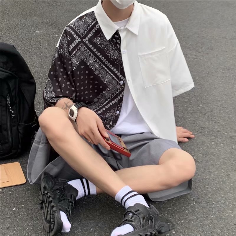 短裤男夏季潮流宽松休闲直筒运动裤韩版港风扎染迷彩男装五分裤子