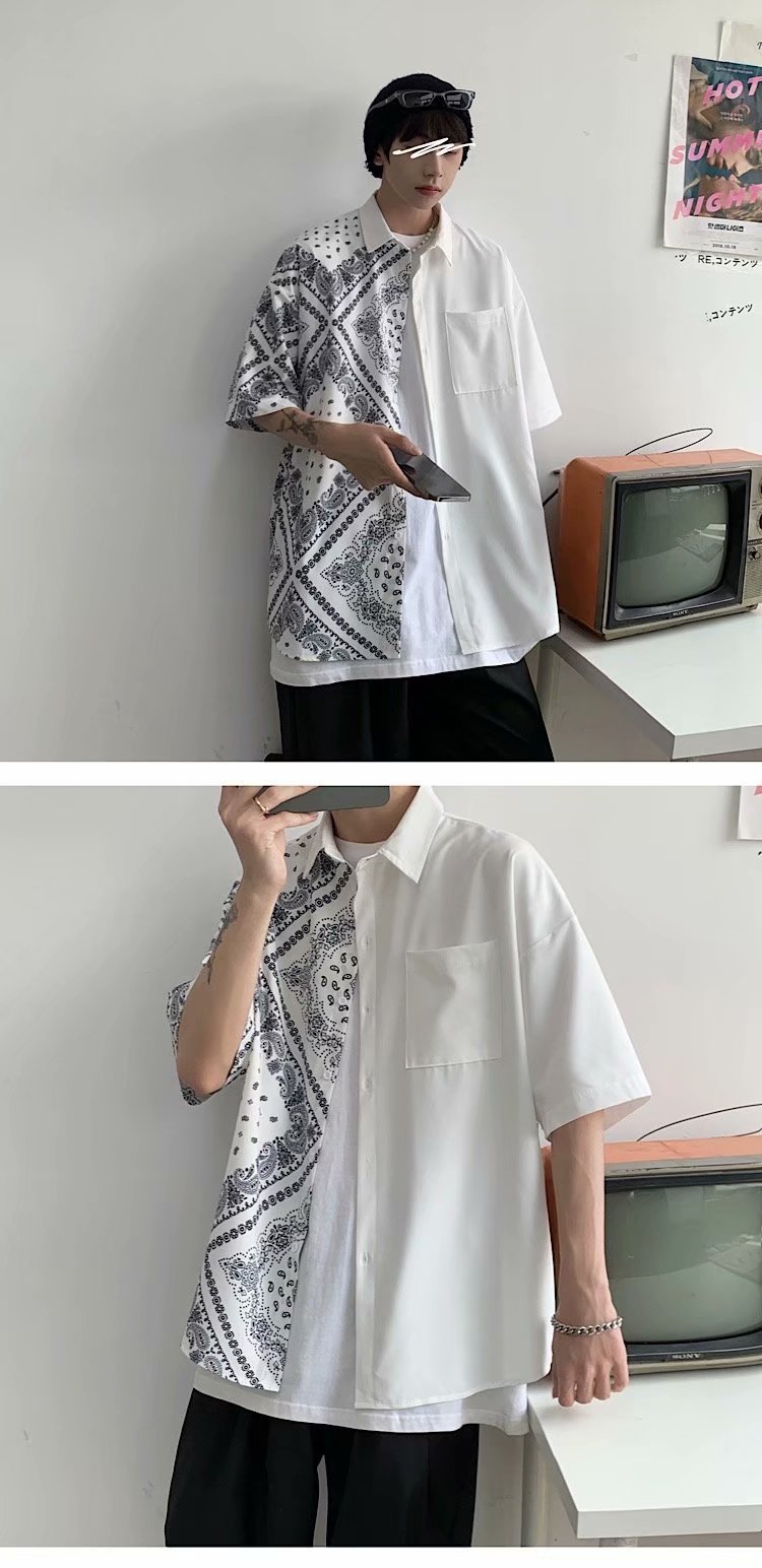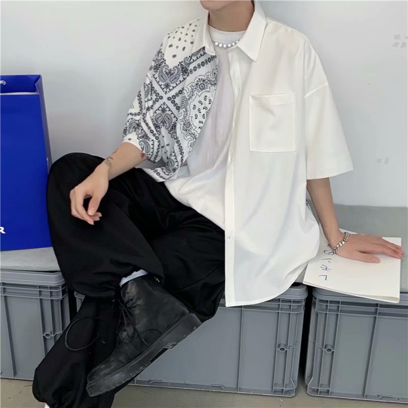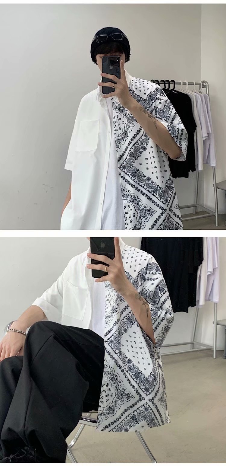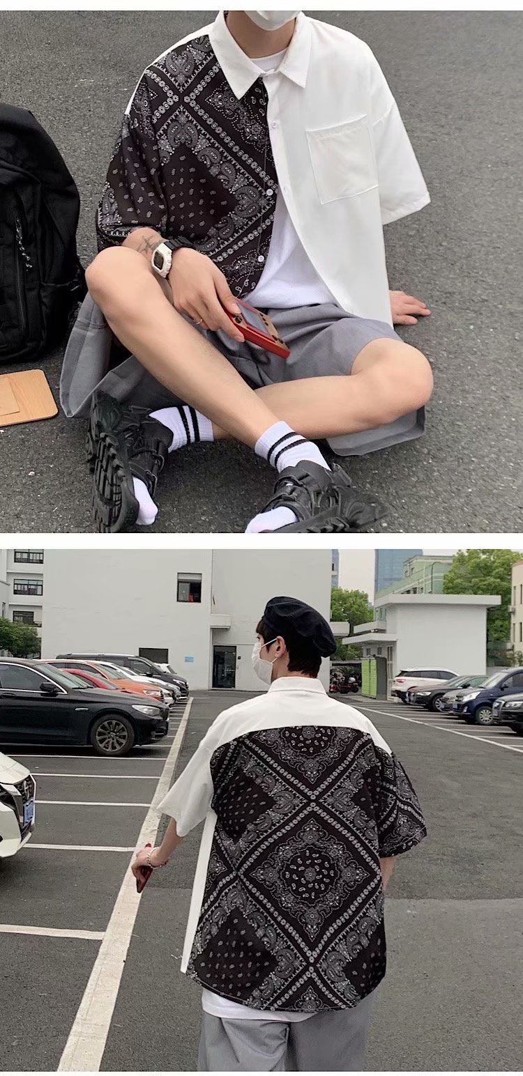 连天煌男士短裤夏季新款中裤直筒迷彩拼接休闲裤韩潮流工装短裤男