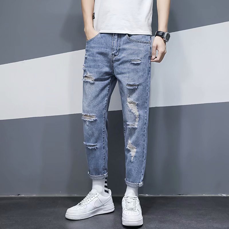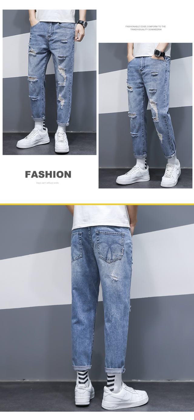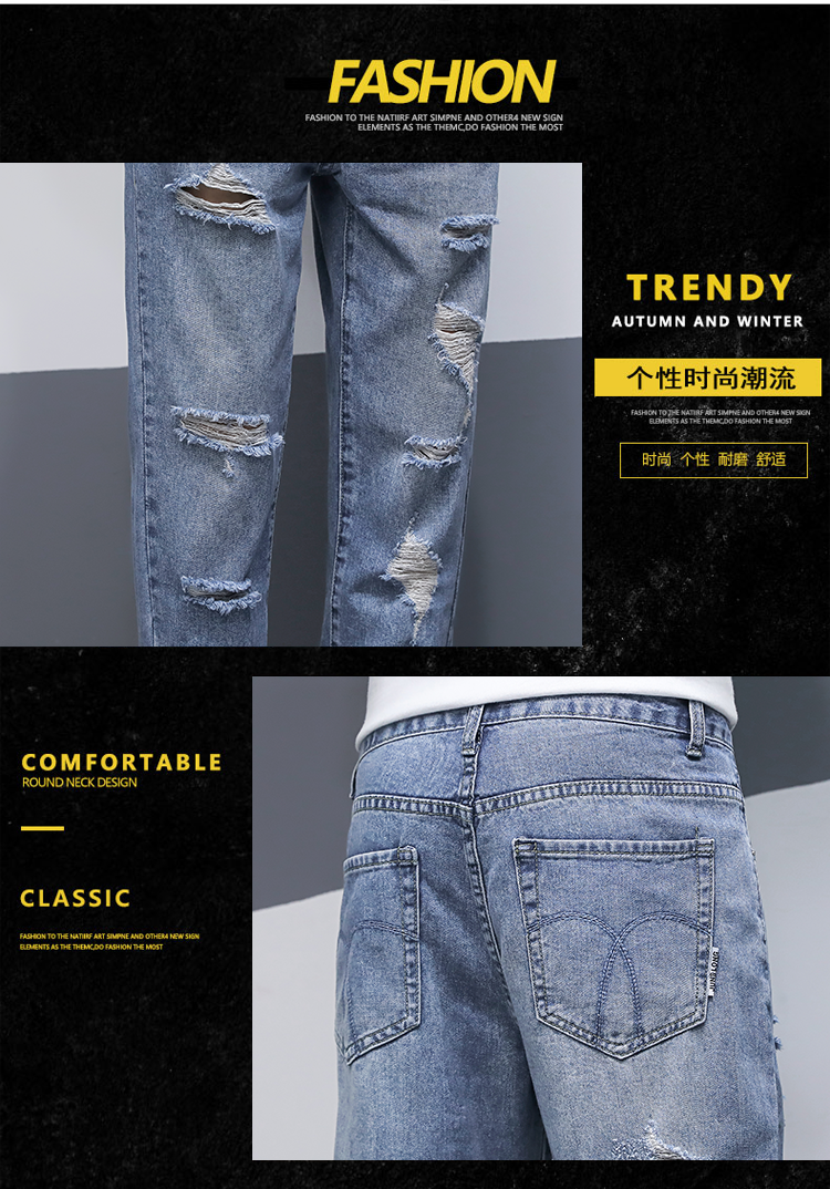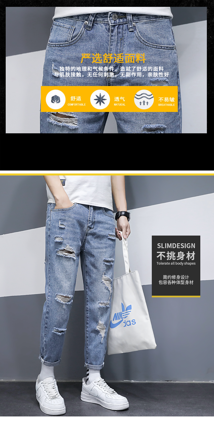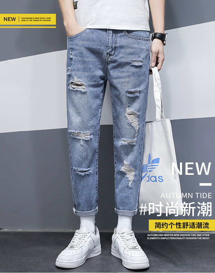 四季新款潮牌男士牛仔裤舒适布料2021新款小直筒男士韩版潮牛仔裤