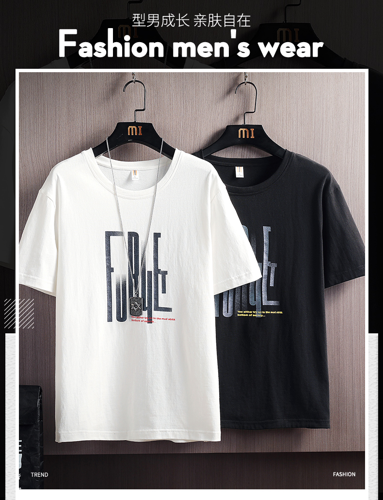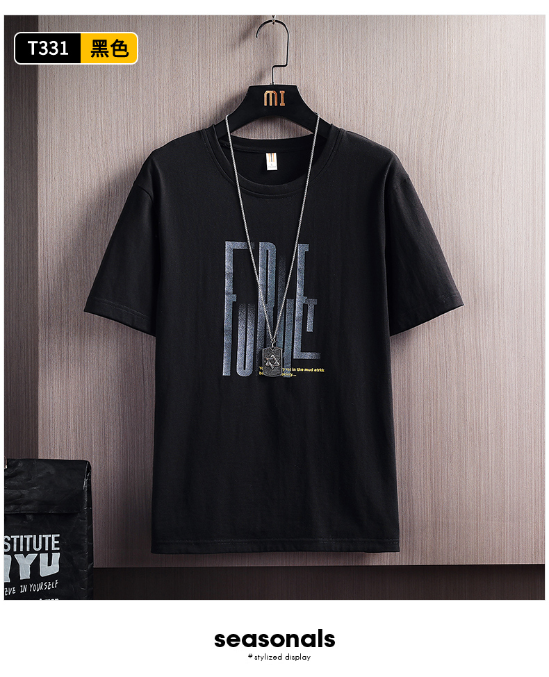 夏季2021新款短袖t恤男士潮牌韩版潮流宽松圆领棉布料好搭衣服