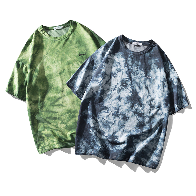 短裤男夏季潮流宽松休闲直筒运动裤韩版港风扎染迷彩男装五分裤子