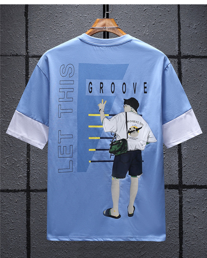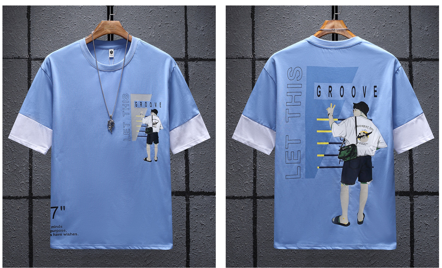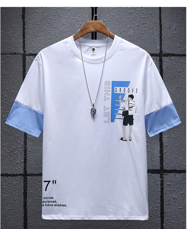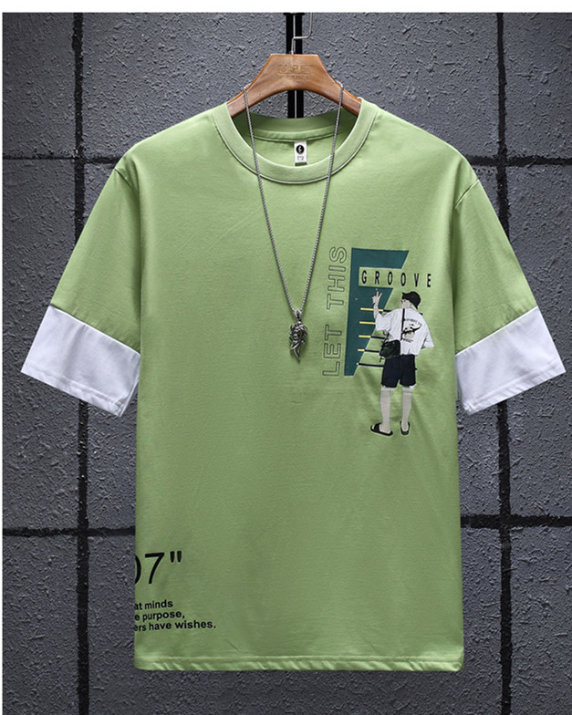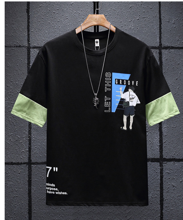 夏季2021新款短袖t恤男士潮牌韩版潮流宽松圆领棉布料好搭衣服