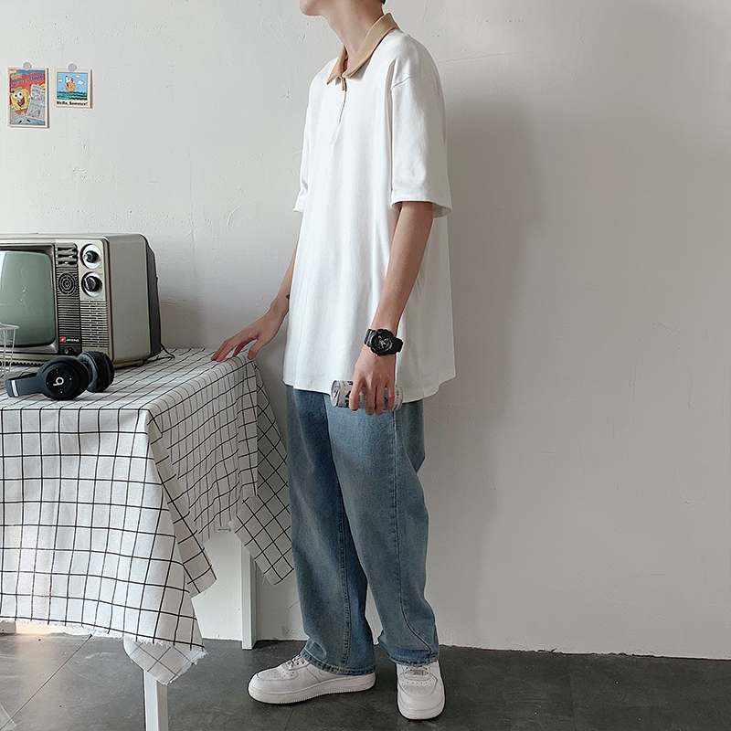 夏季2021新款短袖t恤男士潮牌韩版潮流宽松圆领棉布料好搭衣服