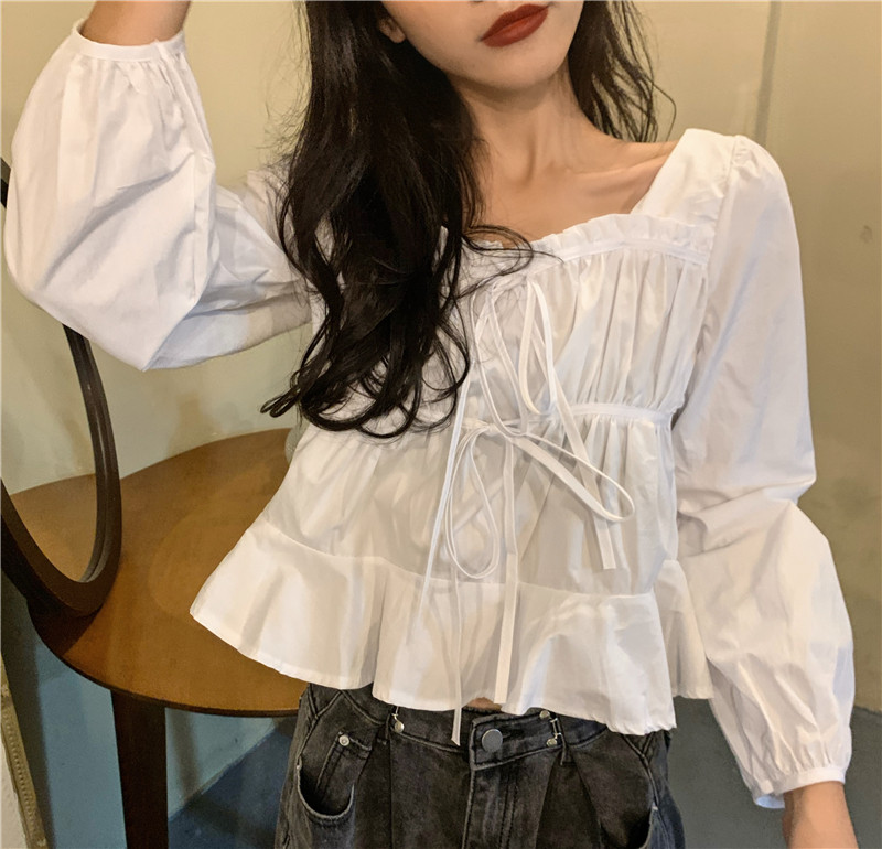 胸前的假绑带炒鸡甜美袖口一点点小束口