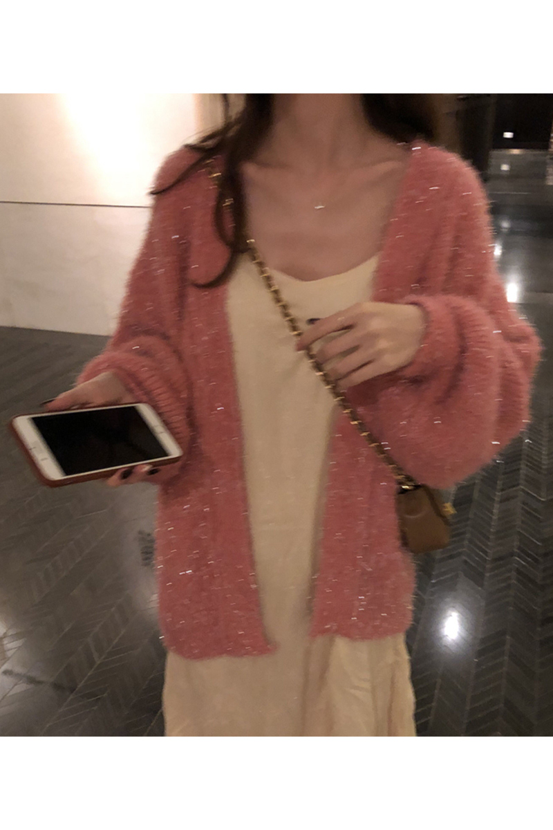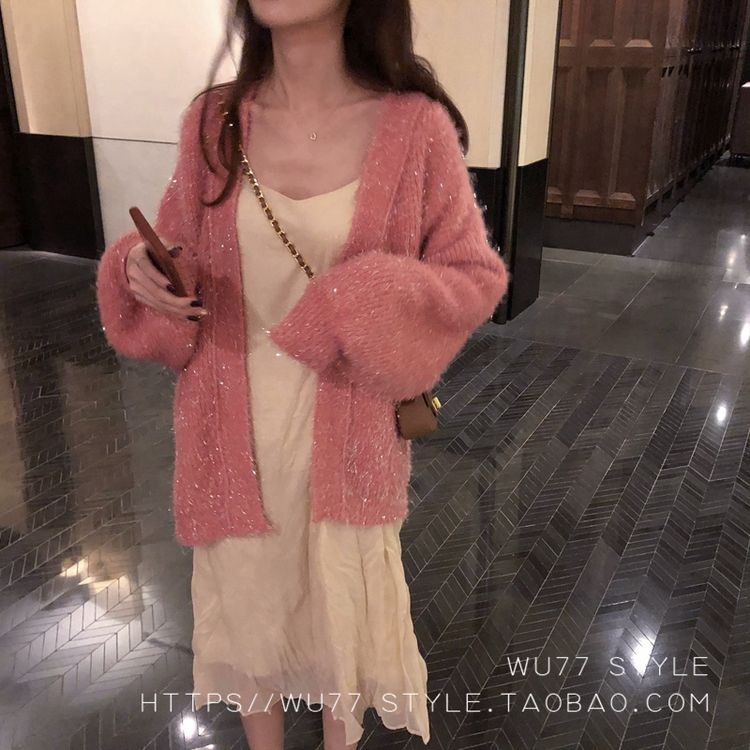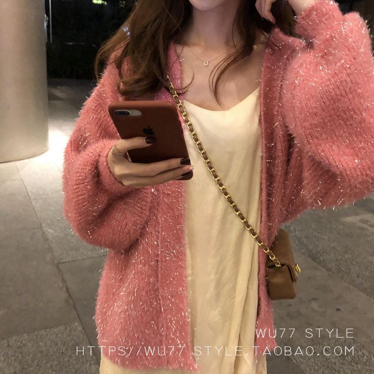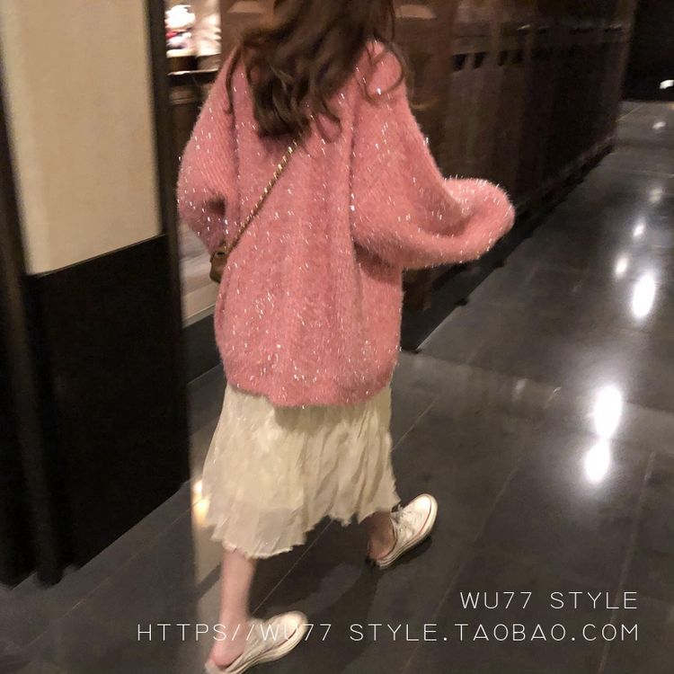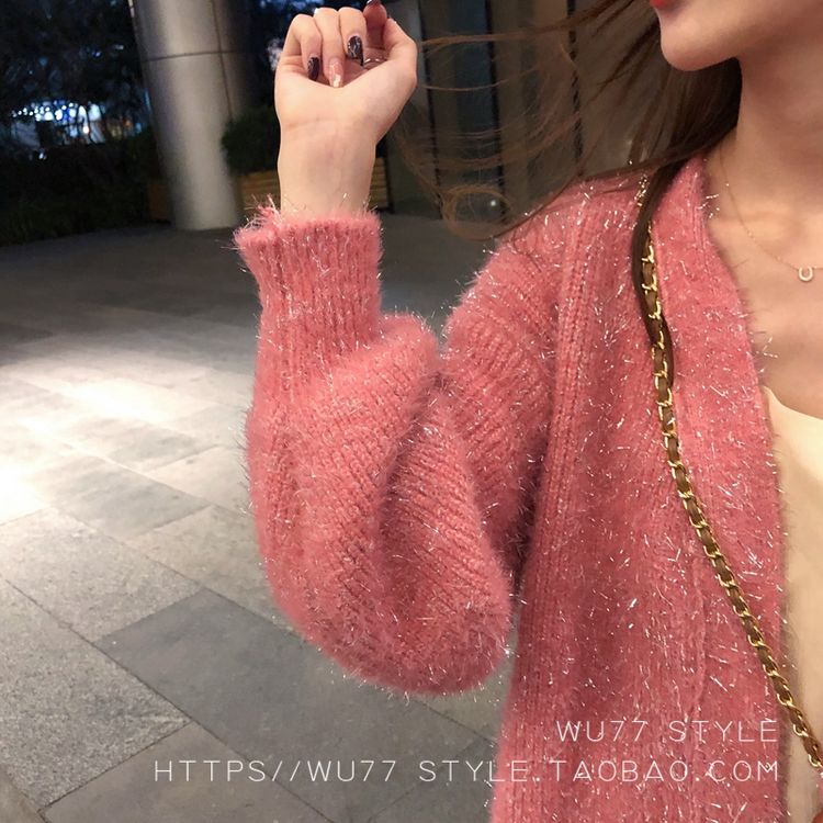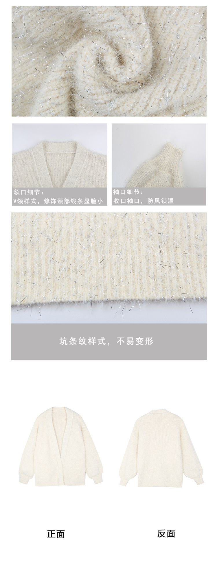这款毛衣开衫 quan部做了混金丝的设计