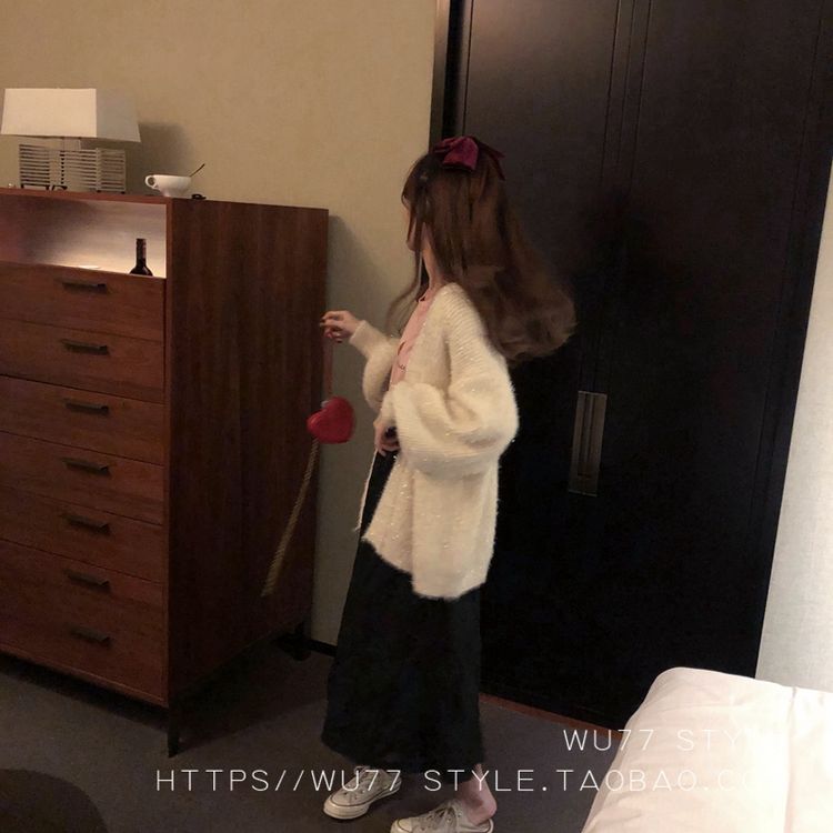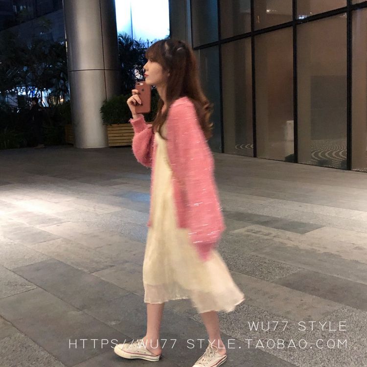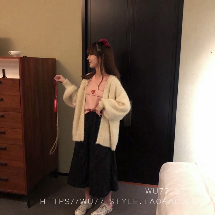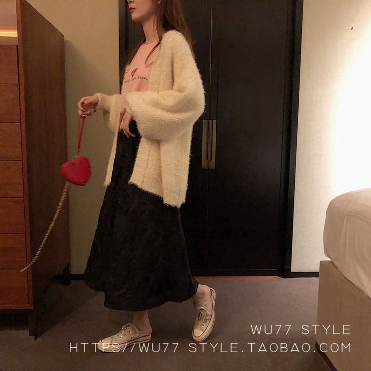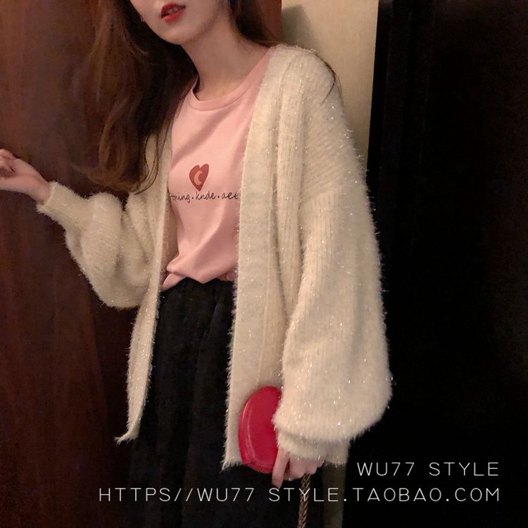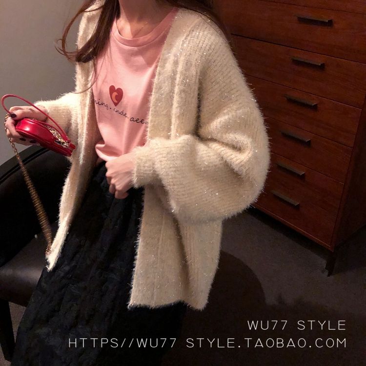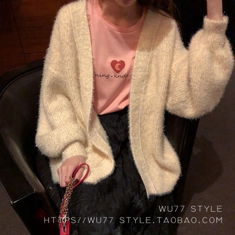 这款毛衣开衫 quan部做了混金丝的设计