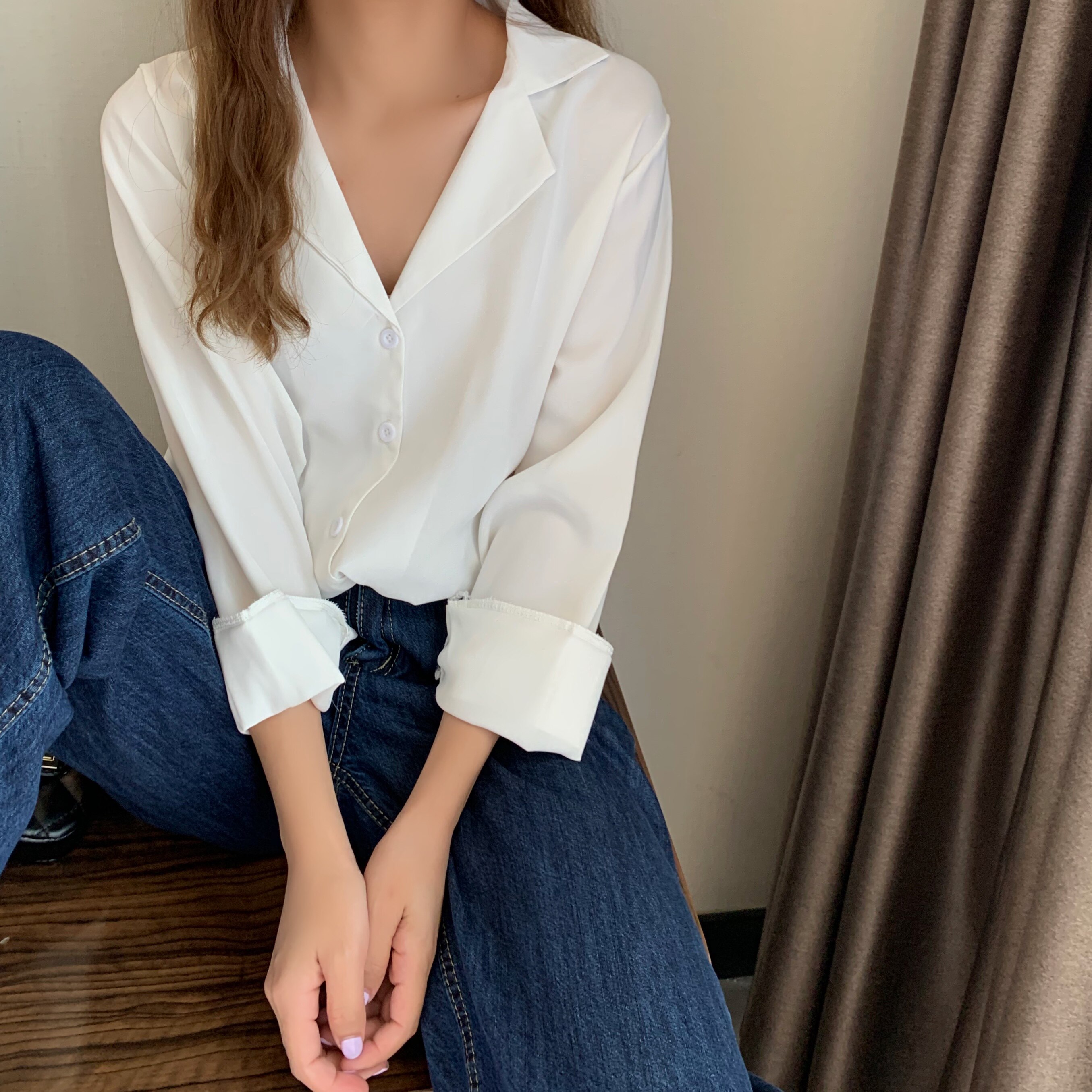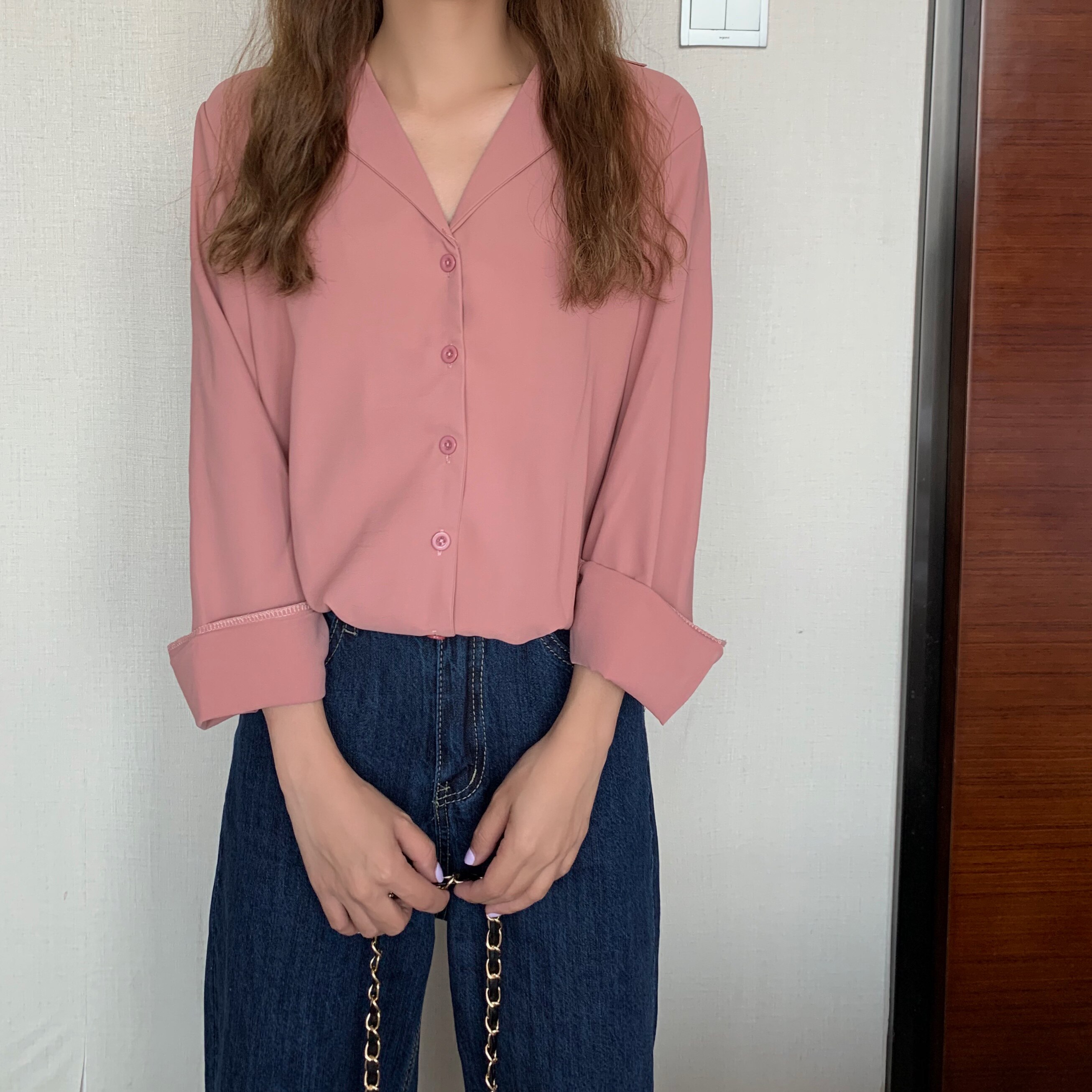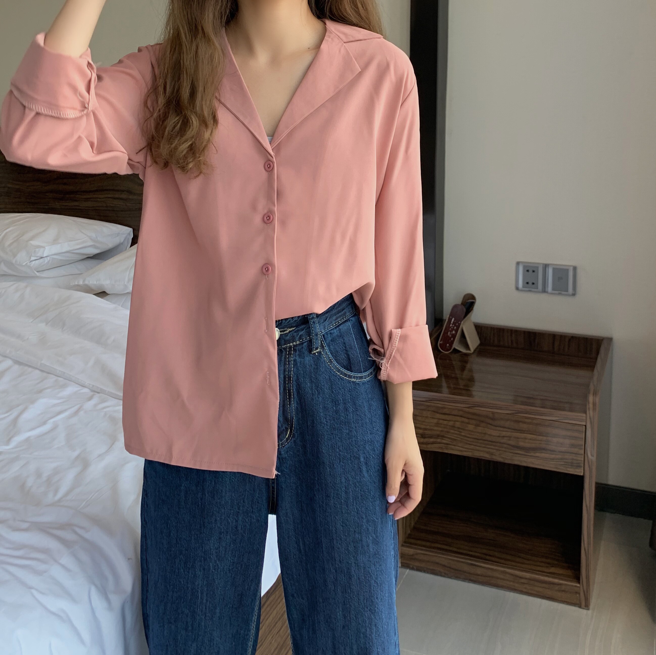 这款纯色简约风格的小宽松衬衫也是墙裂安利的:>