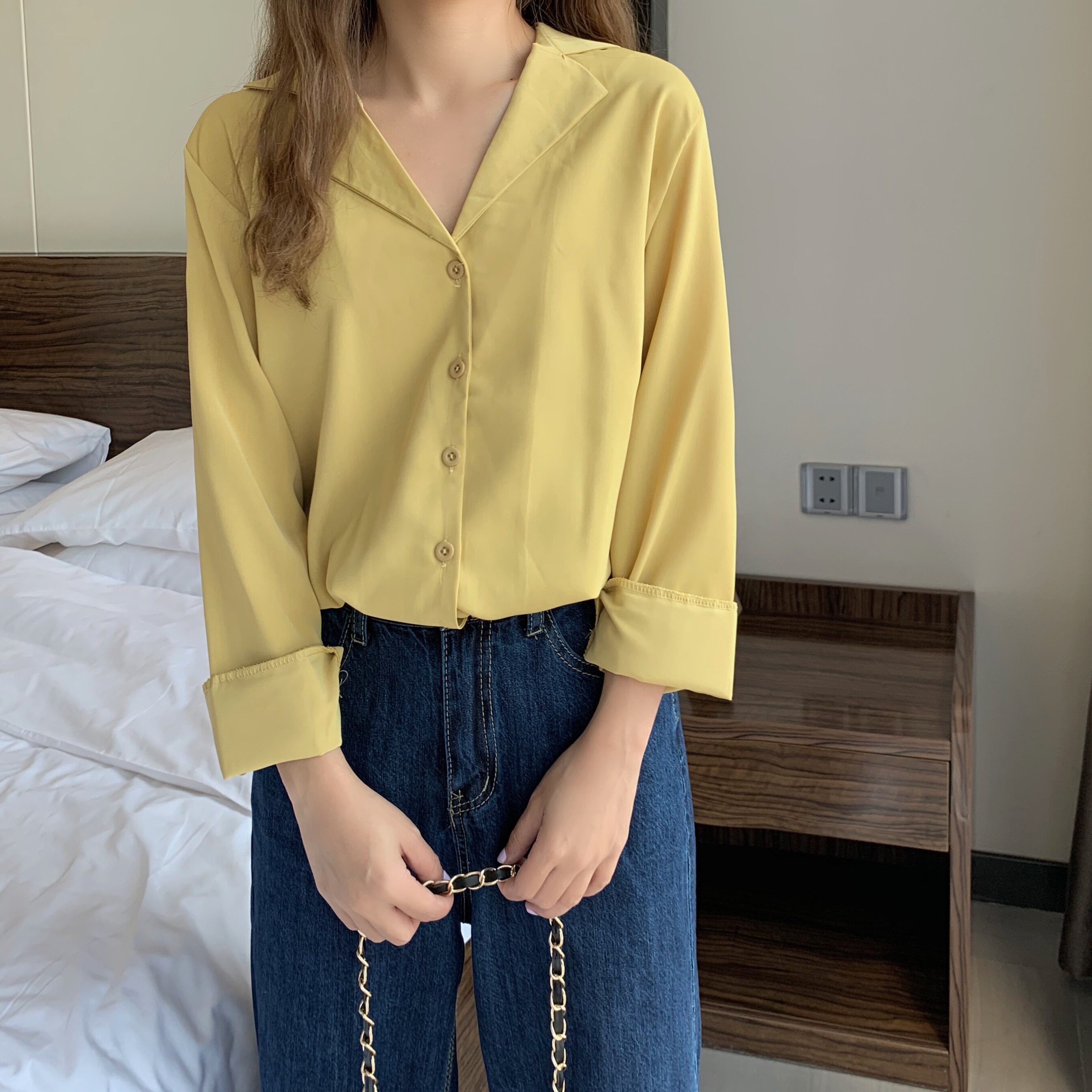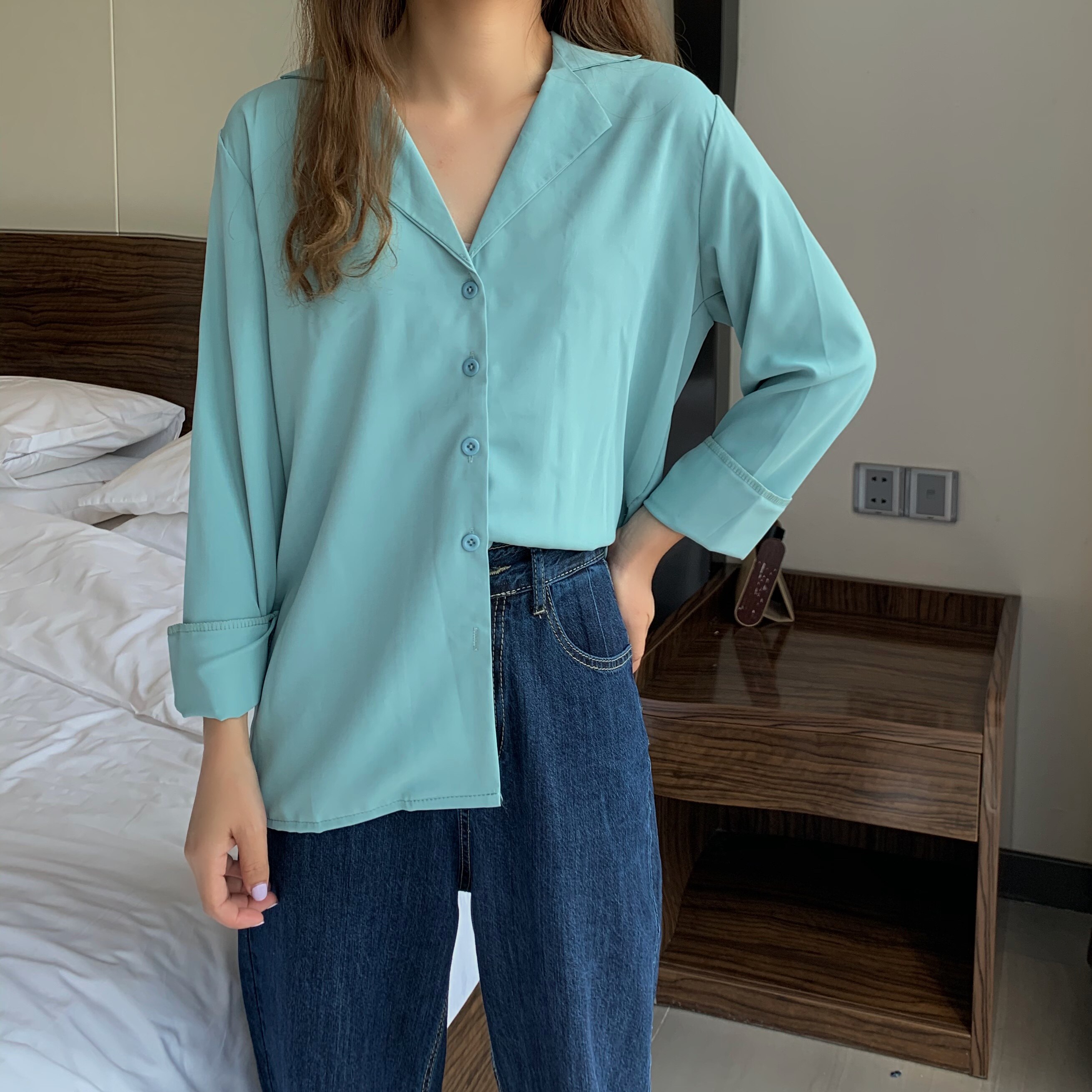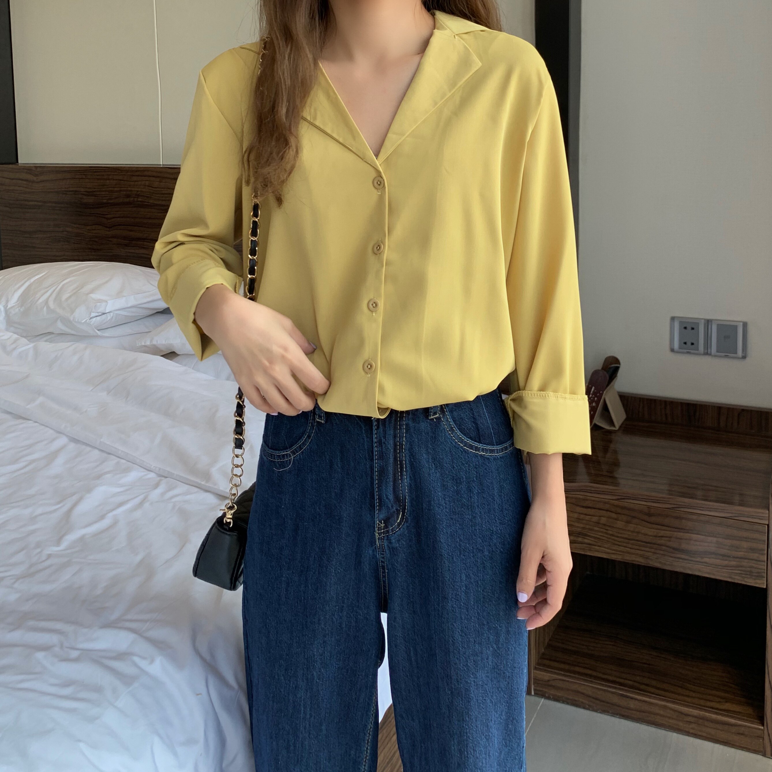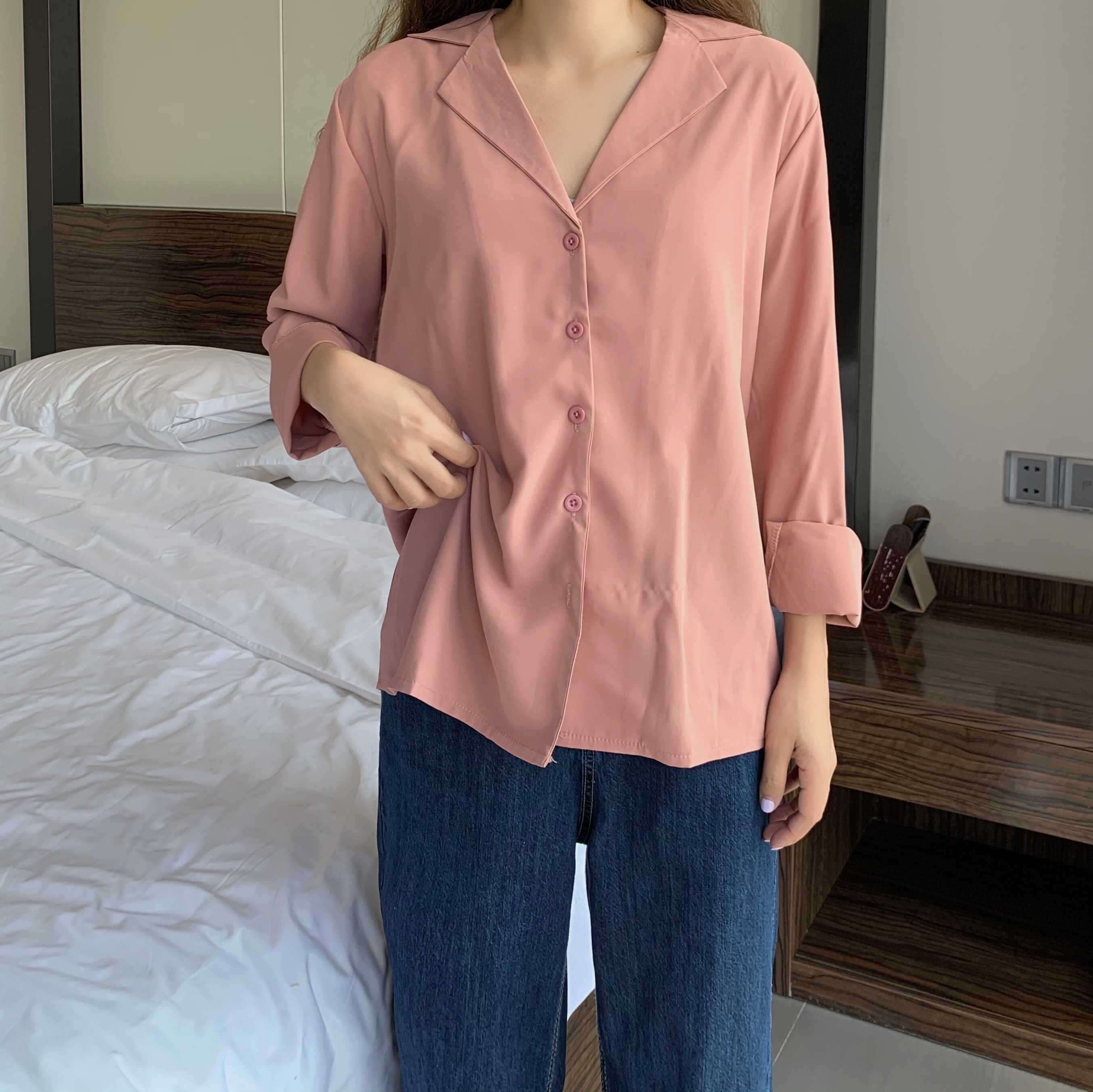 这款纯色简约风格的小宽松衬衫也是墙裂安利的:>