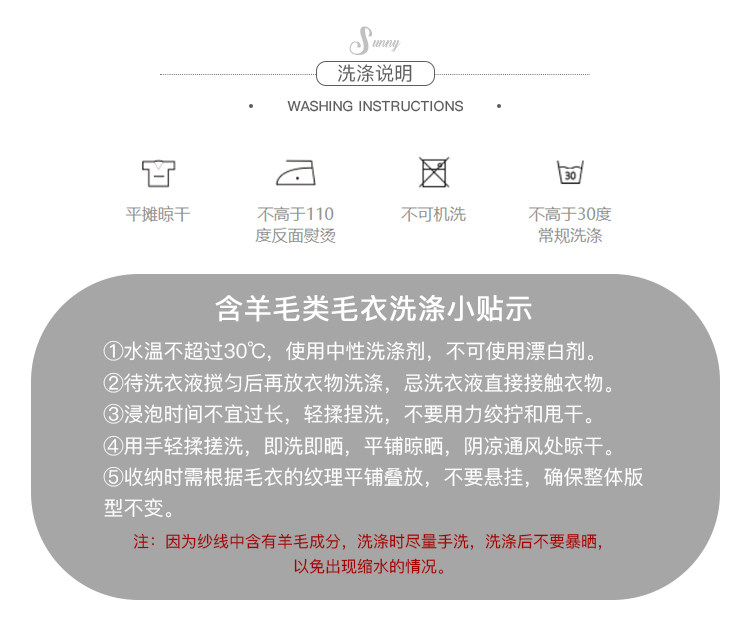 PS:因为纱线中含有羊毛成分,尽量手洗,