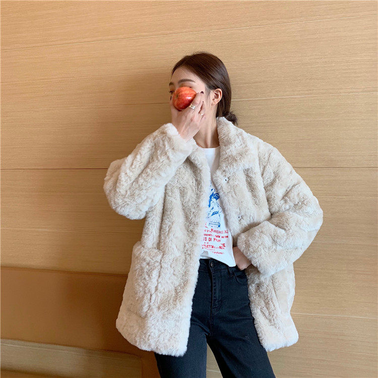 敲气质的仿兔毛皮草外套