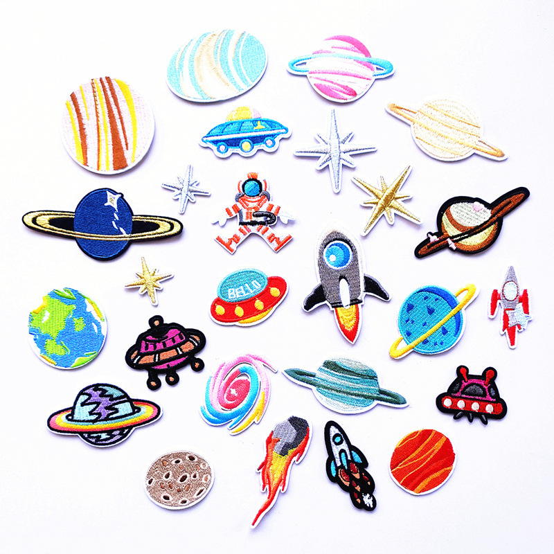 - 跨境爆款电脑绣花标章仔宇航员星球系列布贴patch补丁贴服装辅料