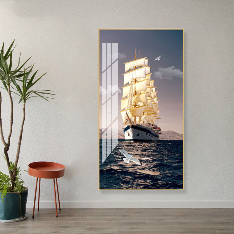 - 轻奢高品质晶瓷工艺帆船图案装饰画家居客厅玄关墙壁墙面装饰艺术