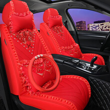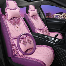 新款女士专用汽车坐垫透气布艺全包围卡通耐磨四季通用座垫套 胭酯红 讴歌TLX-L CDX RDX MDX 下单备注车型,谢谢