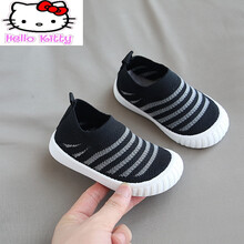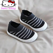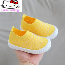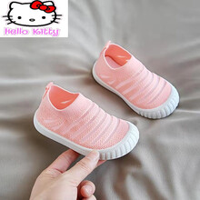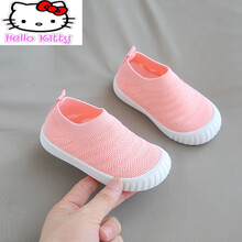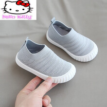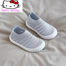 Hello kitty学步鞋春秋宝宝入园学步鞋孩子儿童家居软底室内幼儿园网面鞋一脚蹬小孩子夏天穿的 F8灰【夏季镂空】 内长15cm 时尚飞织面料防滑透气