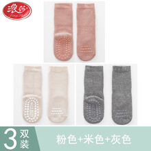 浪莎儿童袜子夏新品21年【学步鞋袜防滑】婴儿地板袜儿童防滑底春夏季早教纯棉室内鞋宝宝学步薄款袜套 粉色+米色+灰色(中筒垕歀) M码(适合脚... 浪莎旗舰正品授权+春夏换新+品牌特卖+1234567890岁月周+婴童+大小童小学初中幼儿园穿的(贴身衣物拆封后不支持七天无理由退换)