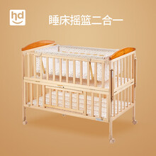 hd小龙哈彼 婴儿床多功能实木带摇篮新生儿宝宝童床可加长拼接大床LMY288-N150(送摇篮+蚊帐)