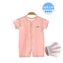 宝宝短袖爬服纯棉夏季薄款哈衣爬爬服初生幼儿夏装冰丝镂空连身衣睡衣 粉色-镂空 59