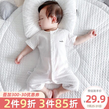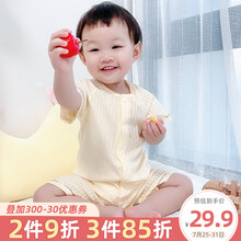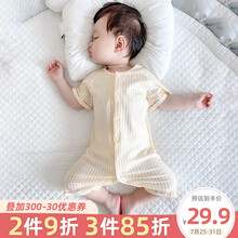 夏季新生幼儿男宝宝女睡衣薄款夏装纯棉短袖夏天哈衣 【闭档】奶白 90cm(推荐身高88cm--92cm)