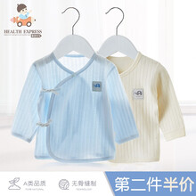 新生婴儿内穿和尚服春秋薄款衣服纯棉夏季初生儿宝宝单件无骨上衣0-1-3-6个月 健康快车 夏款蓝色 52cm