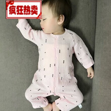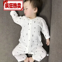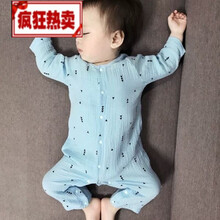 夏0薄款长袖3纱布韩版爬爬服6纯棉新生儿睡衣宝宝 黄色 会有点色差 66 3-6个月左右