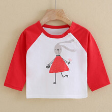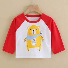 贝乐咿儿童衣服男宝宝t恤长袖纯棉春秋男童上衣洋气T恤秋装婴儿打底衫 21124红 66