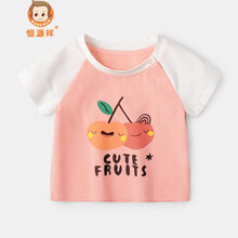 纯 棉1岁男童体恤洋气女童上衣小宝宝夏装小孩子小学生夏天穿的 红白 66cm