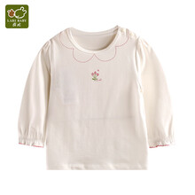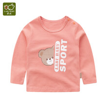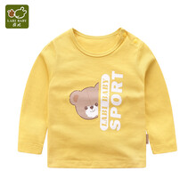 拉比童装儿童肩开上衣宝宝夏季薄T恤男童婴儿单件卡通棉衣服 米白 80cm