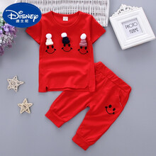 迪士尼(Disney)女宝宝夏装衣服0-1-2-3岁女童短裤套装夏季婴儿T恤韩版纯棉两件套小孩子穿的 红色BMH笑脸 100cm