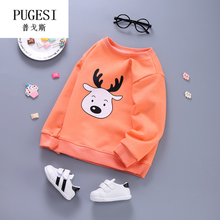 儿童T恤0-7岁男女童打底衫男童卫衣长袖上衣宝宝纯棉婴儿春秋衣服 小鹿卫衣桔色 80 CM(建议身高70-80)