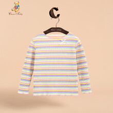 精典泰迪Classic Teddy 儿童打底衫女童T恤婴幼打底衫宝宝衣服婴儿打底春新品 粉白彩条 130