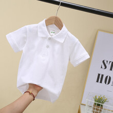 婴儿童纯白小衫白色短袖T恤色男童夏装女童打底衫翻领短袖班服校服 灰色 888-4短袖 100cm(吊牌6号)