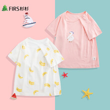 杉杉FIRS 【两件装】儿童短袖T恤夏季宝宝衣服半袖男女童T恤婴儿夏季衣服 香蕉白色+鸭子粉色 80/48