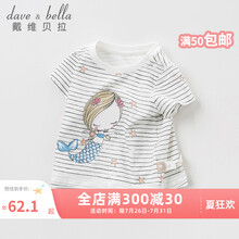 davebella戴维贝拉夏季新款女童美人鱼条纹短袖