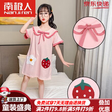 南极人女童睡裙纯棉儿童睡衣夏季短袖公主裙中大童家居服卡通圆领