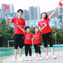 柚一杉亲子装全家装夏装2021新款一家三口红色短袖母子母女全家装T恤儿童活动团购套装 中国红 宝宝90建议身高85cm/25斤左右