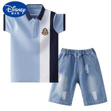 2021夏装班服polo衫中大童纯棉牛仔短裤套装12-15岁潮 蓝色套装 170码
